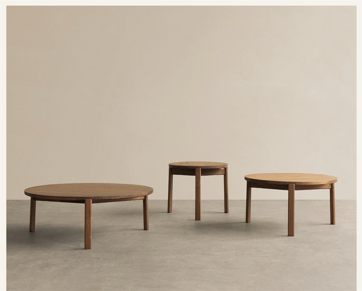 Whether playing host to drinks or home to the remote control or of-the-moment reads, the versatile Passage Lounge Table brings a feeling of soft serenity to spaces thanks to its calming round shape and solid wood construction. Offered in lacquered walnut or FSC™-certified oak, each piece displays unique grain patterns inherent to the high-quality hardwoods. Cleverly designed as a flatpack, self-assembly kit, inviting you to engage with the design, it is offered in three sizes, allowing you to pair multiples together in a nest-like formation.