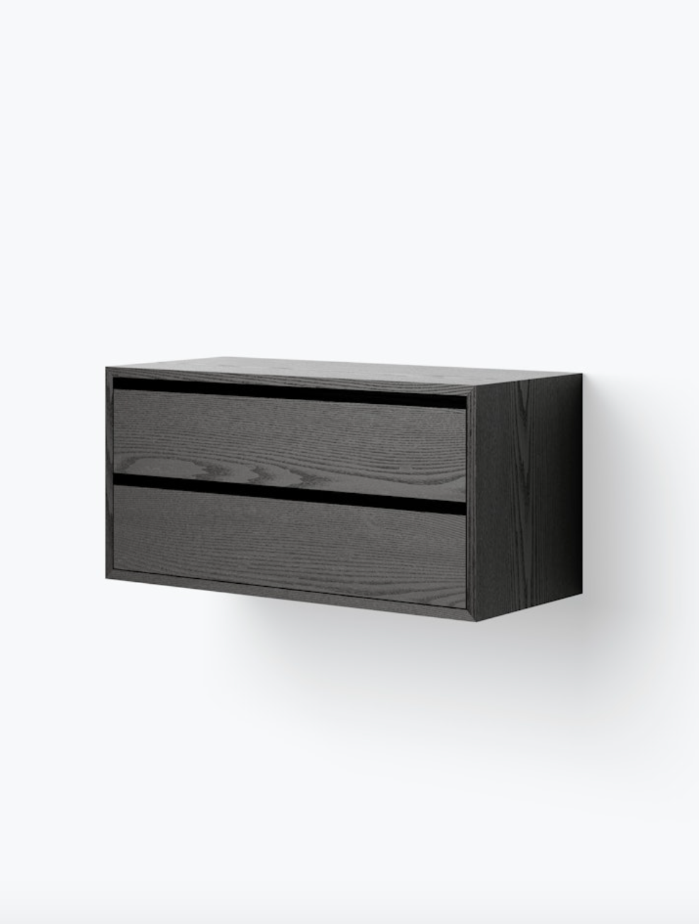 In the realm of storage solutions, the New Works Cabinet Series articulates the art of subtle storage evolution. This thoughtfully curated ensemble of cabinets is designed to seamlessly integrate and harmonise with your existing shelving system or take centre stage on your walls, hanging on their own, serving as a sophisticated focal. The cabinets, adorned with either doors or drawers, are available in low and tall versions, effortlessly hiding away your essentials with minimalist handles that maintain the system’s sleek appeal. Choose from black, white, oak, black-stained ash, or walnut finishes to resonate with the series’ timeless aesthetic.