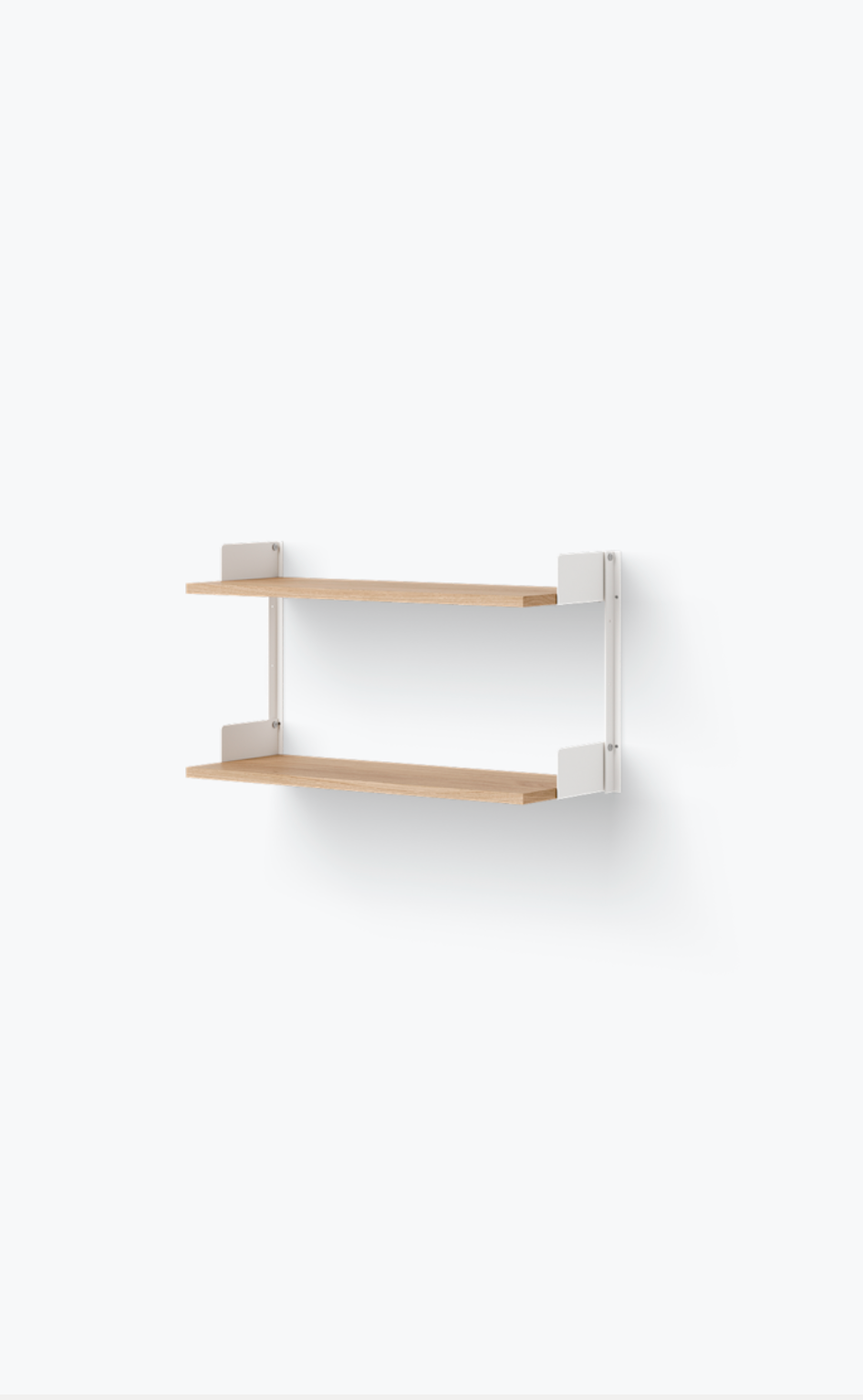 Sometimes the simplest pieces prove to be the most difficult to find, say, the quintessential wall shelf. With understated details and intelligible flexibility, the New Works shelving system aims to be just that. Designed to effortlessly blend into a variety of spaces, this simple shelving system continues New Works’ ongoing quest of creating elevated basics. Nothing is surplus and everything has been carefully attended to, like the angular profiles of the wall bars and the integrated bookends that keep your belongings in place. The shelves are neatly assembled with flat knurled screws in stainless steel, adding an honest yet refined detail to the design. A system that is meant to grow - in your home and in range – to accommodate various storage needs.