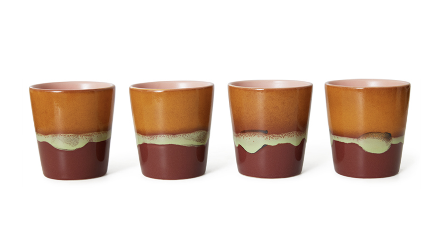 An all-time favourite - the old-fashioned drip, the trendy Americano or the perfect slow coffee. The coffee mugs have a 180 ml capacity, so more than enough to fill your beloved mug. Thanks to the earthy elements and natural colours, this is the most relaxed range in the retro 70s ceramic collection. The exciting colour compositions and textured, hand-finished surfaces make each piece unique.