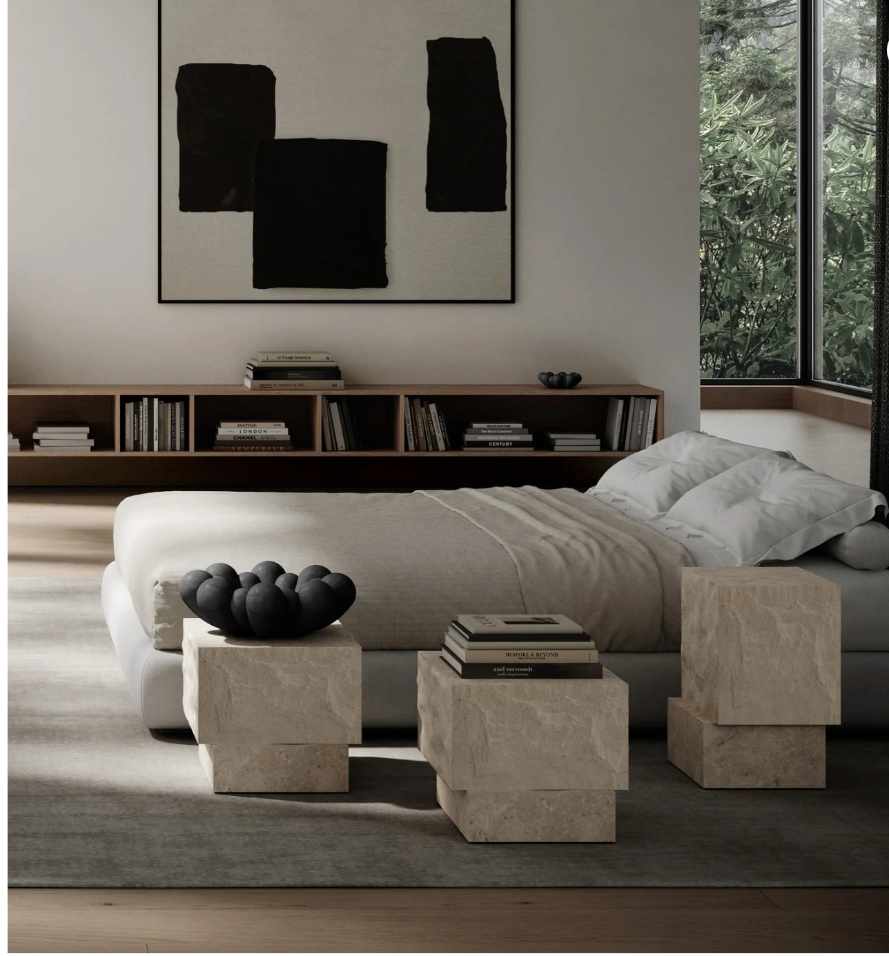 Rich on architectural references, Temple Coffee Tables reminisces architectural facades to create a play of tactile and polished surfaces. Made from a beautiful sand colour limestone, each table consists of two staggered blocks on top of each other. Rich on texture, small holes and incorrections, each table embraces the beauty of the natural stone. Made by skilled stone artisans, the tactile surface is achieved by delicate hand carvings. Temple Coffee Tables comes in two sizes and is suitable for many purposes, such as coffee tables, side table and plinths to exhibit objects. Limestone is suitable for outdoor use.
