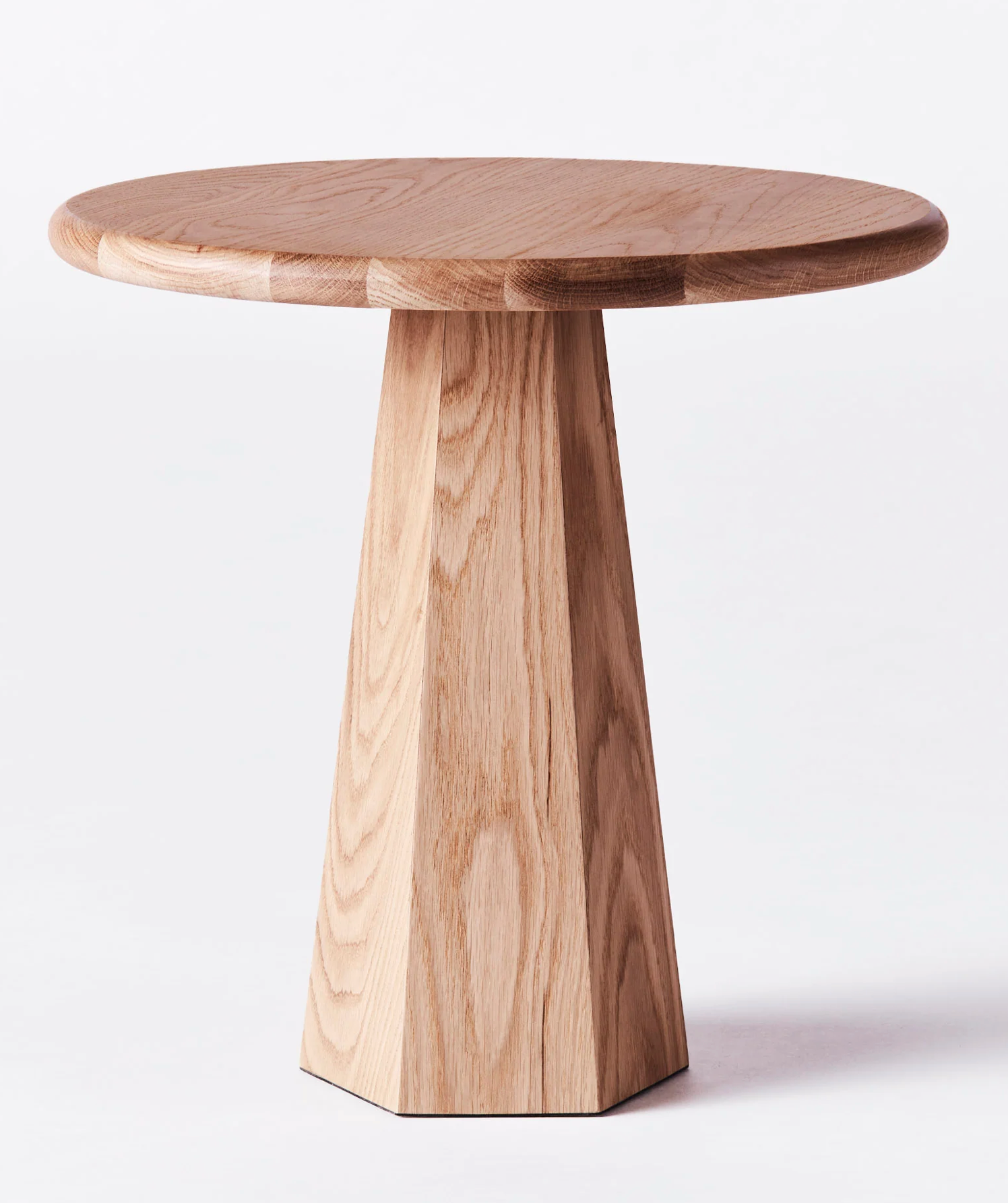 Hexagon Side Table Walnut är ett modernistiskt sidobord med en sexkantig bas och en rund bordsskiva. Tillverkad av massiv valnöt, tillför den unika designen av Hexagon Side Table en touch av modern elegans till alla rum, vilket gör det till en perfekt passform för mysiga hörn eller som ett elegant nattduksbord.