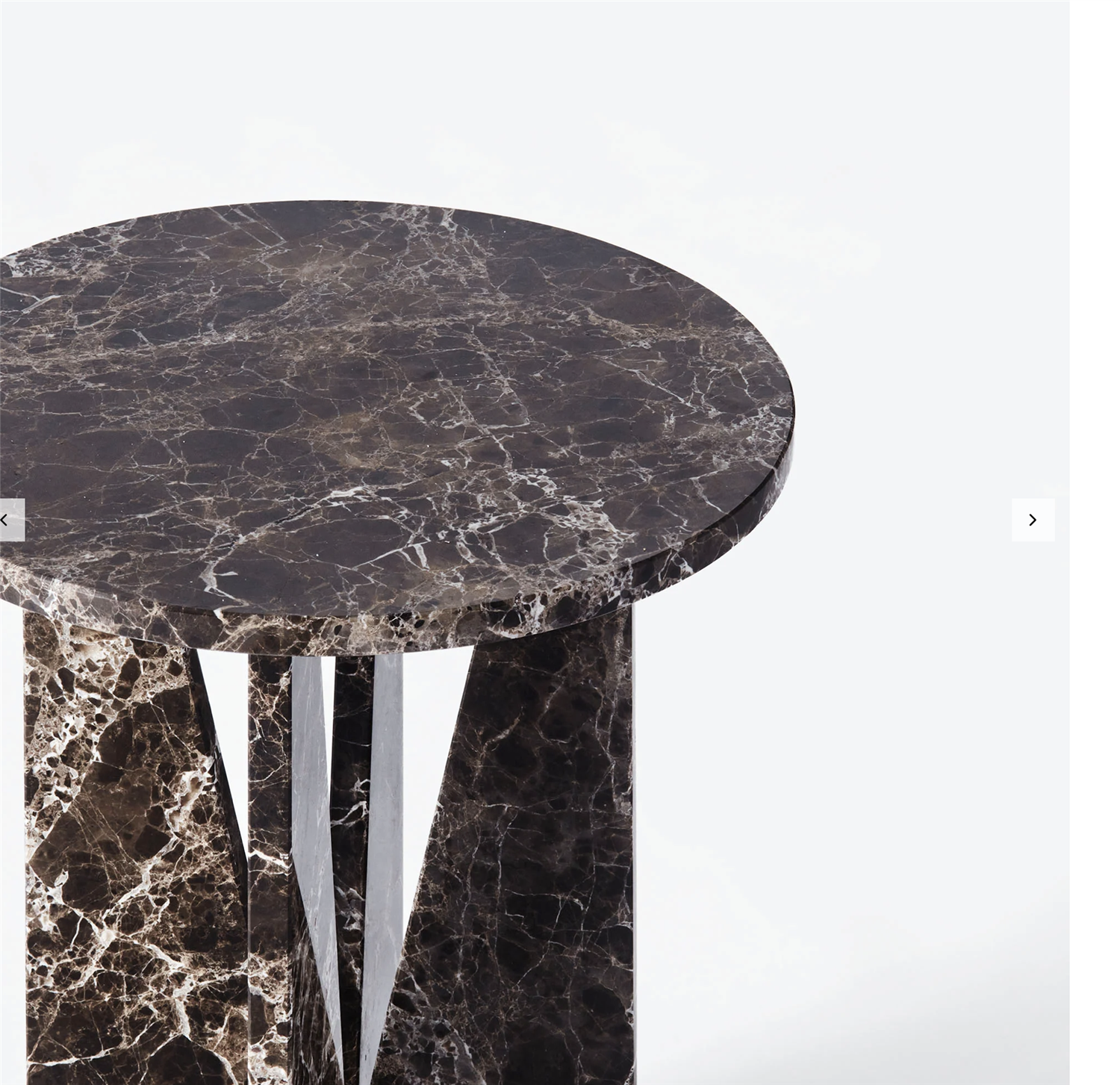 V Side Table är ett bord av massiv marmor i mörk emperador. Den runda bordsskivan vilar på en bas som består av triangulära ben som tillsammans skapar en V-form. Bordet är handgjort av duktiga snickare med lång erfarenhet.