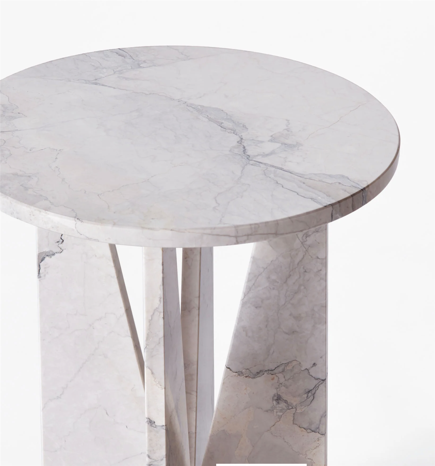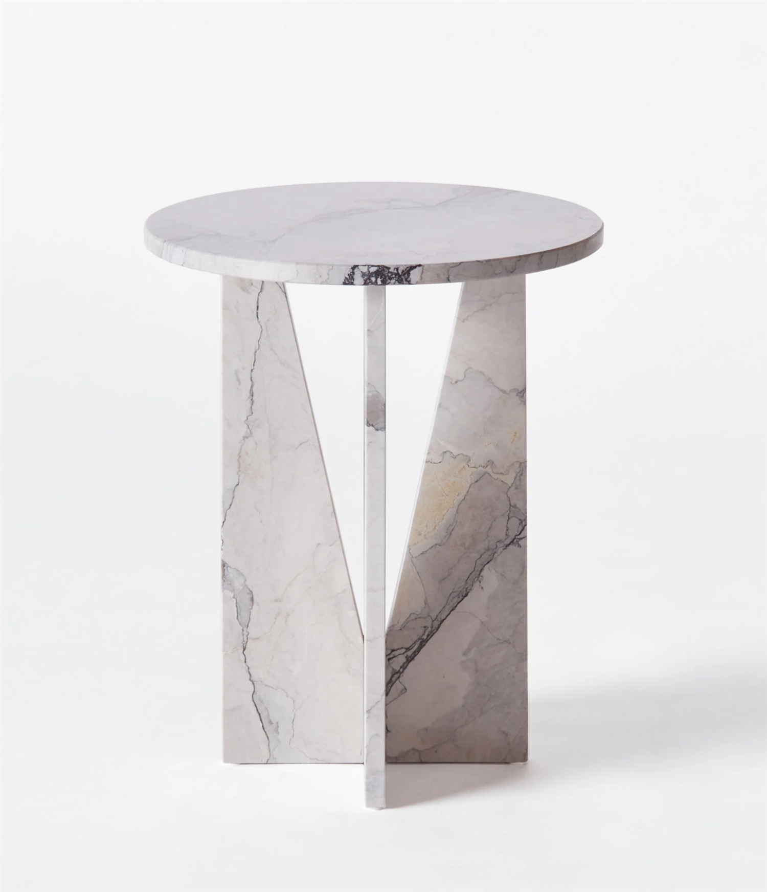 V Side Table är ett bord av massiv marmor i albansk grått. Den runda bordsskivan vilar på en bas som består av triangulära ben som tillsammans skapar en V-form. Bordet är handgjort av duktiga snickare med lång erfarenhet.