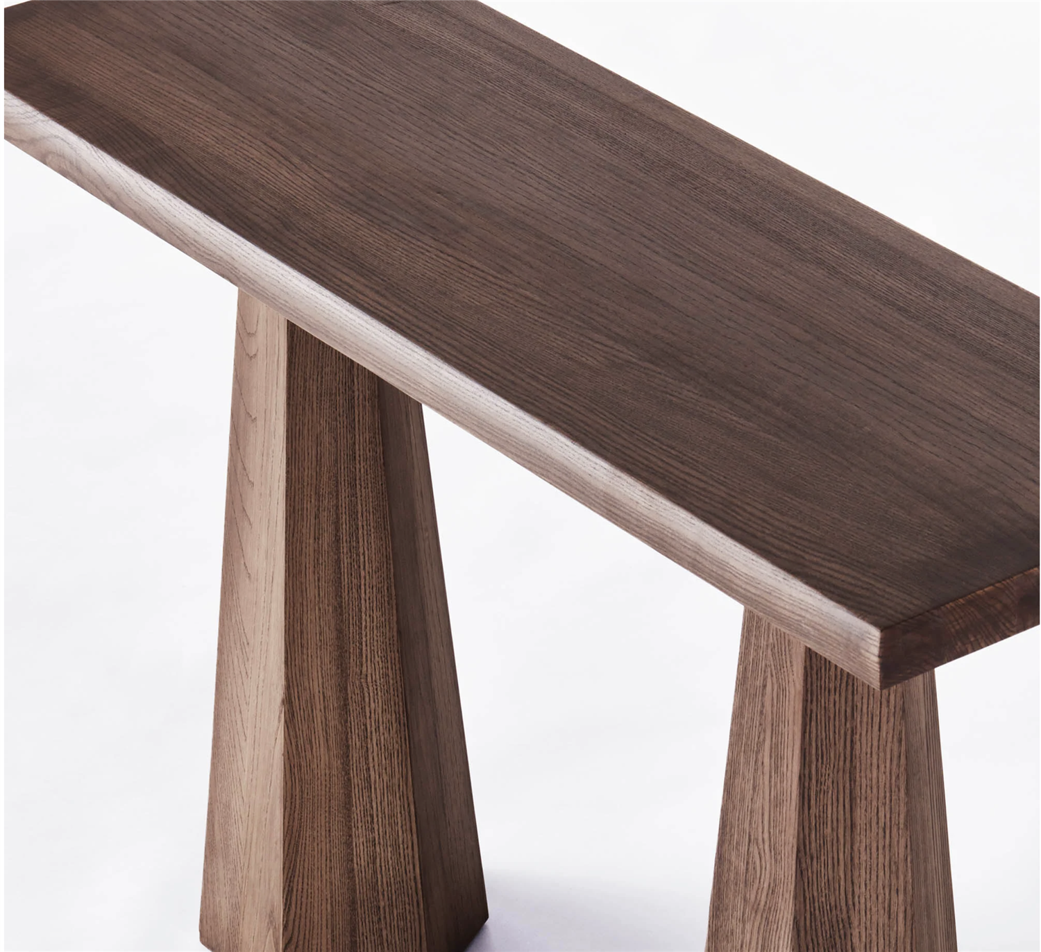 Hexagon Console Table Stained Ash är ett modernt konsolbord tillverkat av massiv ask. En rektangulär bordsskiva sitter på de två baserna med en sexkantig form.