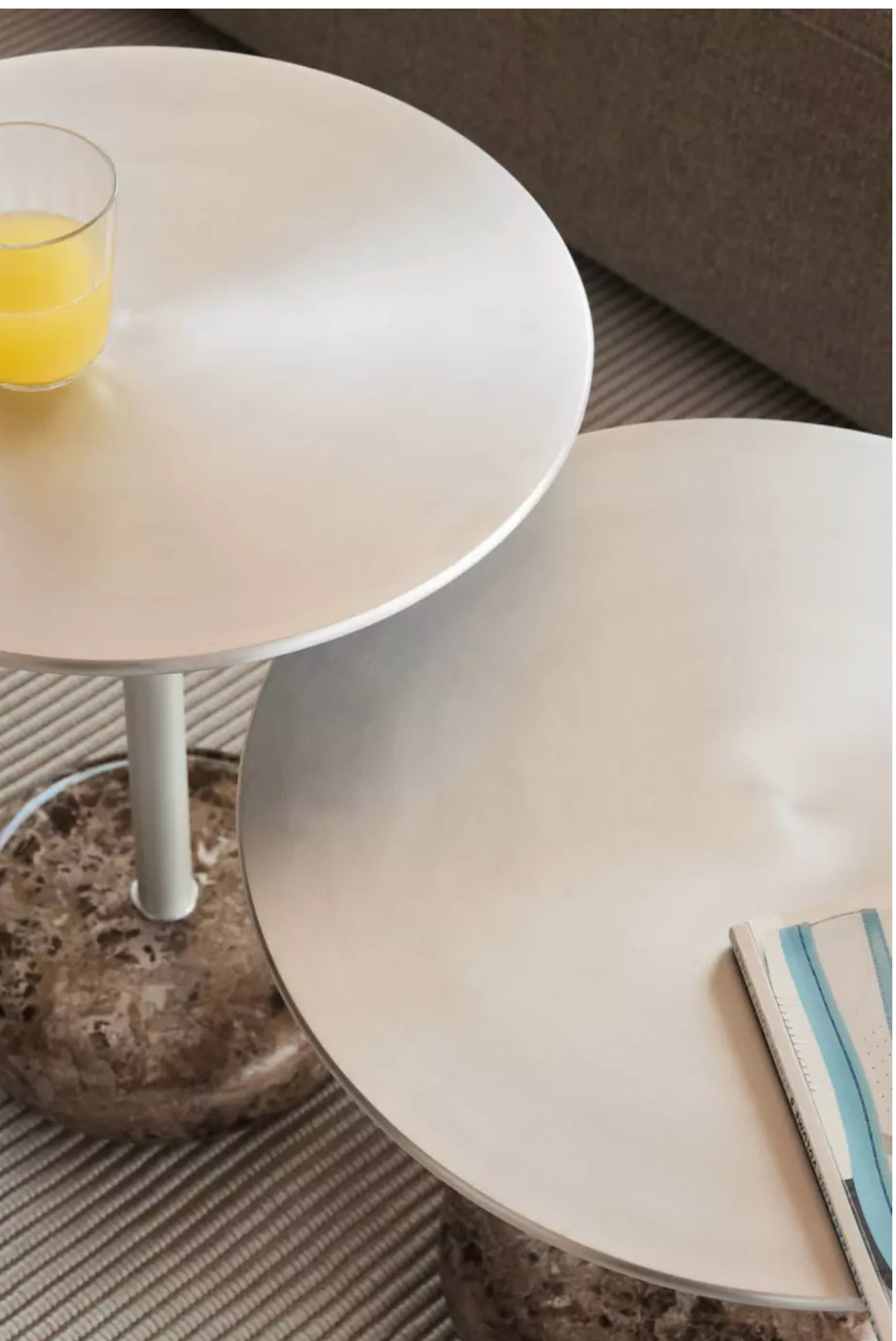 Taking aesthetic references from the smoothed stones found washed up on the shore and the horizon line that float above it, the Ton Side Table’s base is made from a heavy Emperador marble, hence the name.