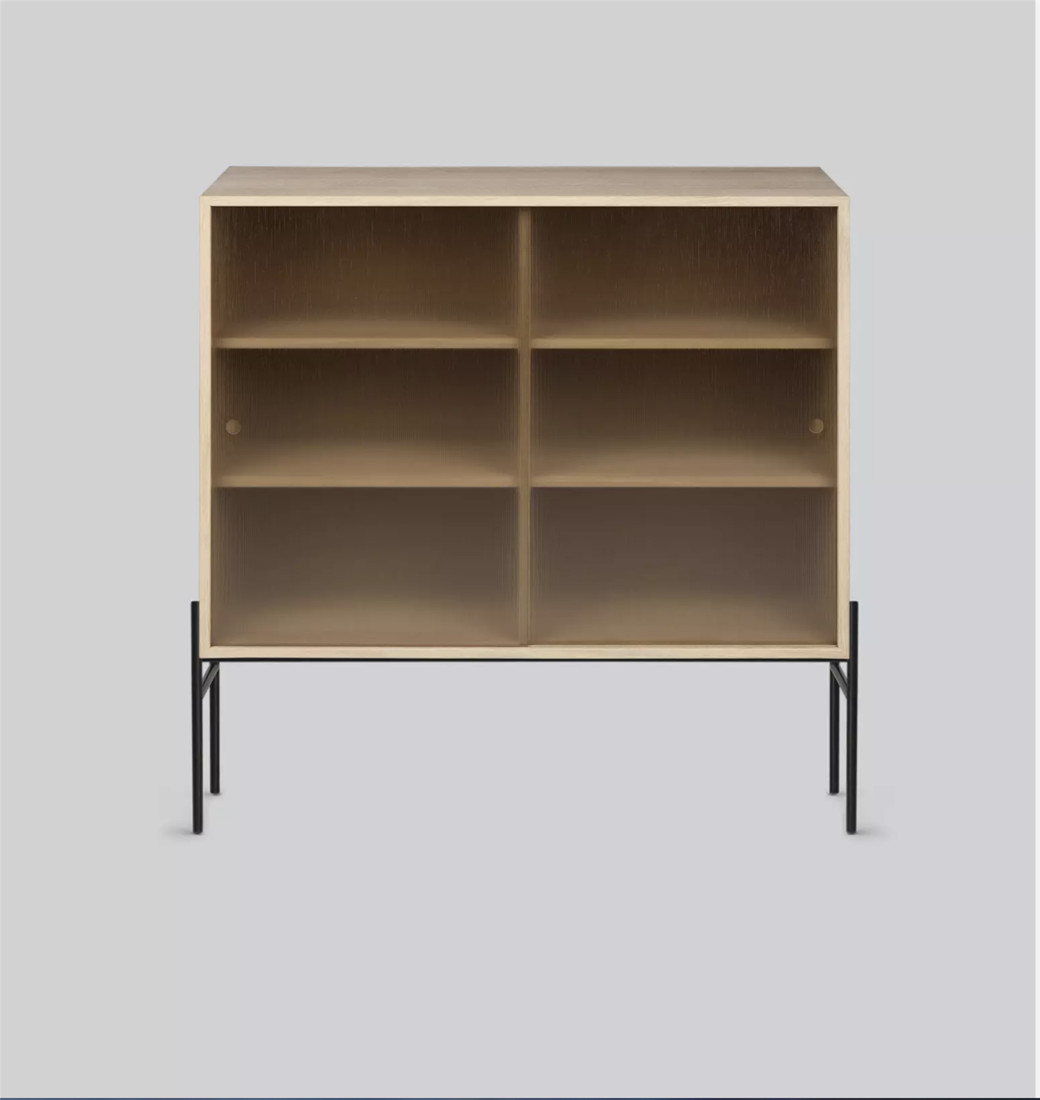 Finely fluted and tempered, with a tint of bronze, the intriguing matt and semi-transparent front hints at what’s inside without giving away too much. Meanwhile the perfectly proportioned oak frame and sleek metal legs keep everyday items safely stored, while still allowing you to elegantly display your favourites on top.