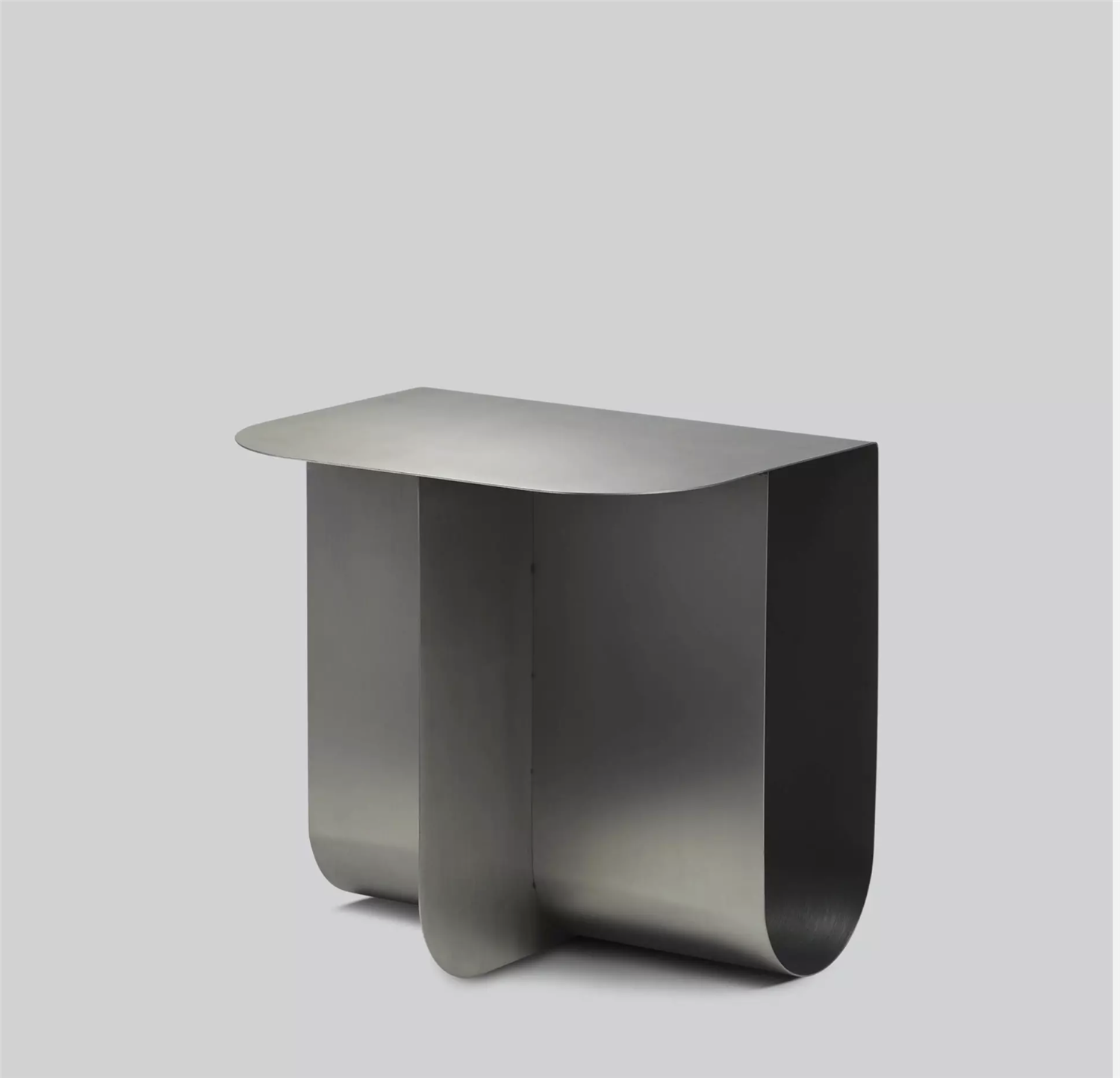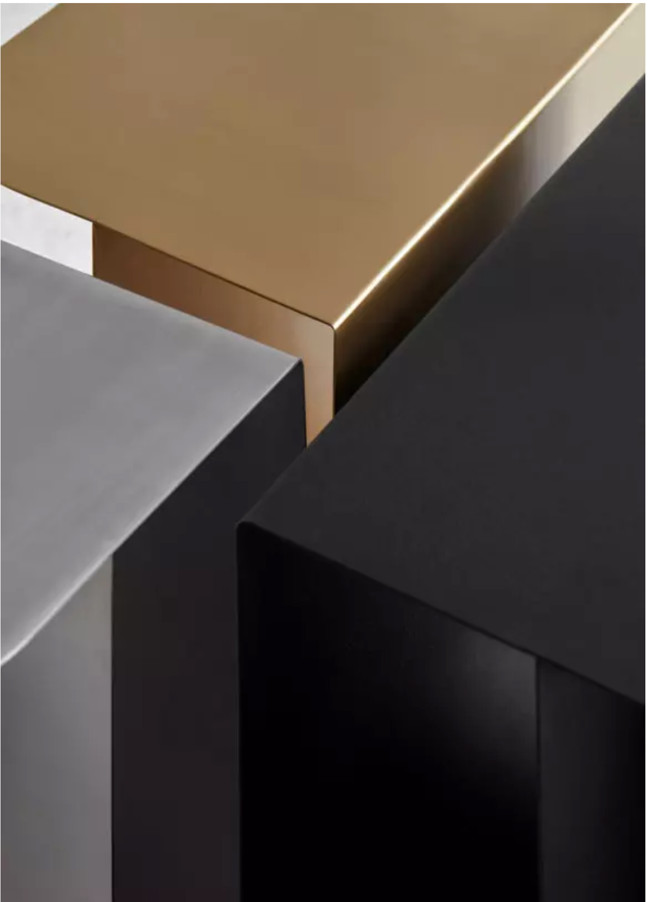 The spaces highlight the items placed inside rather than hiding them from view, forming a unique combination of storage and display. Light passes through the table, creating subtle shadows that transform the surfaces’ appearance. The table’s four-sided shape is constructed from two sheets of metal folded into one design. Available in brass, stainless steel and with a black painted finish, Mass provides a compact, space-saving alternative to bulky designs.