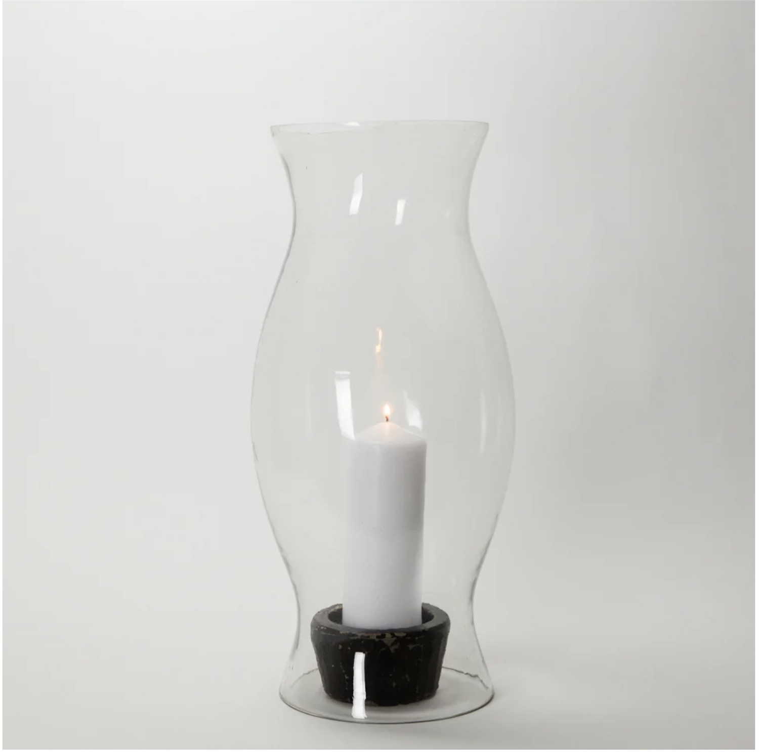 Ein glassylinder til å ha over lysestaker så lyset ikke blåser ut.