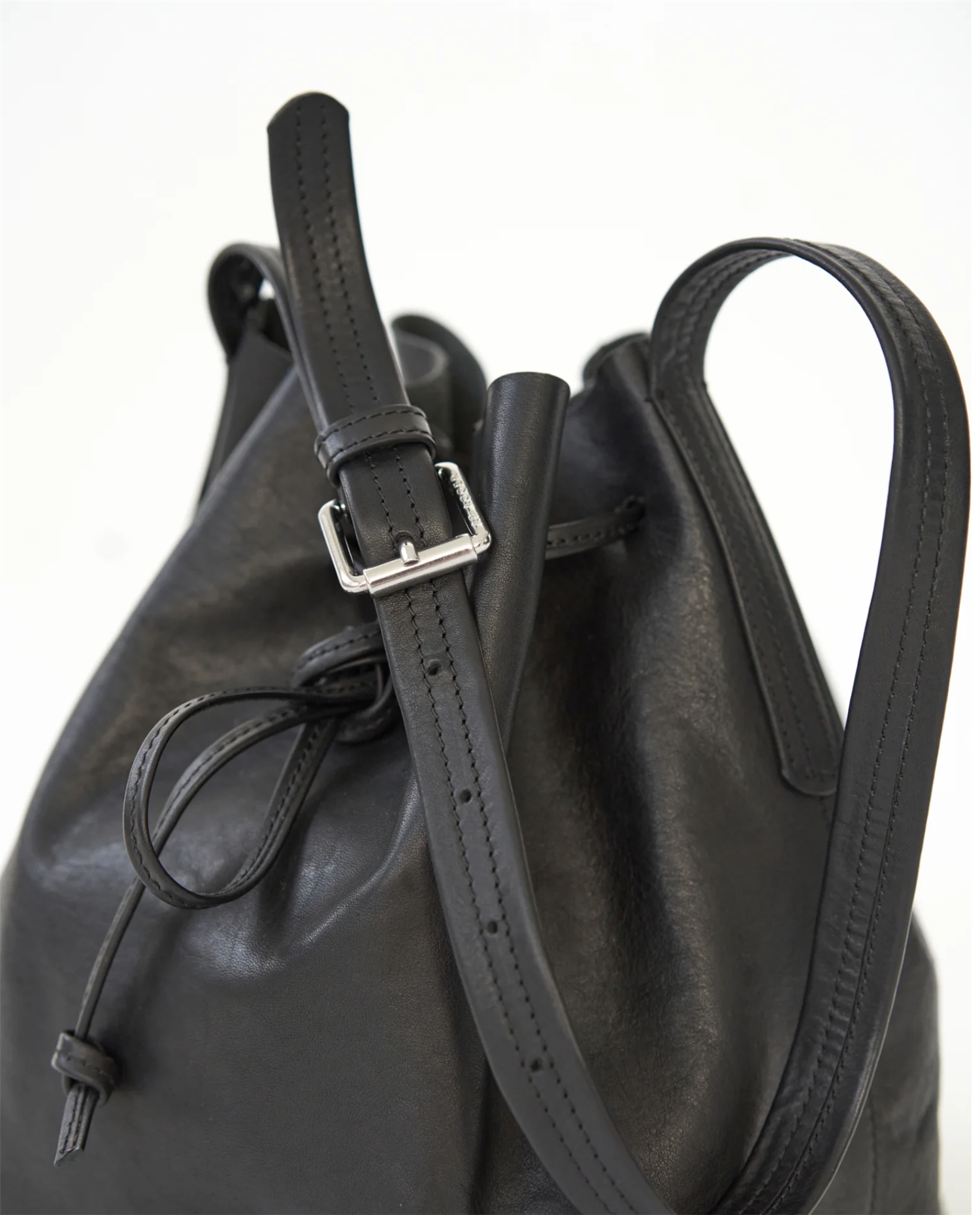 FULL GRAIN LEATHER BUCKET BAG WITH LOGO