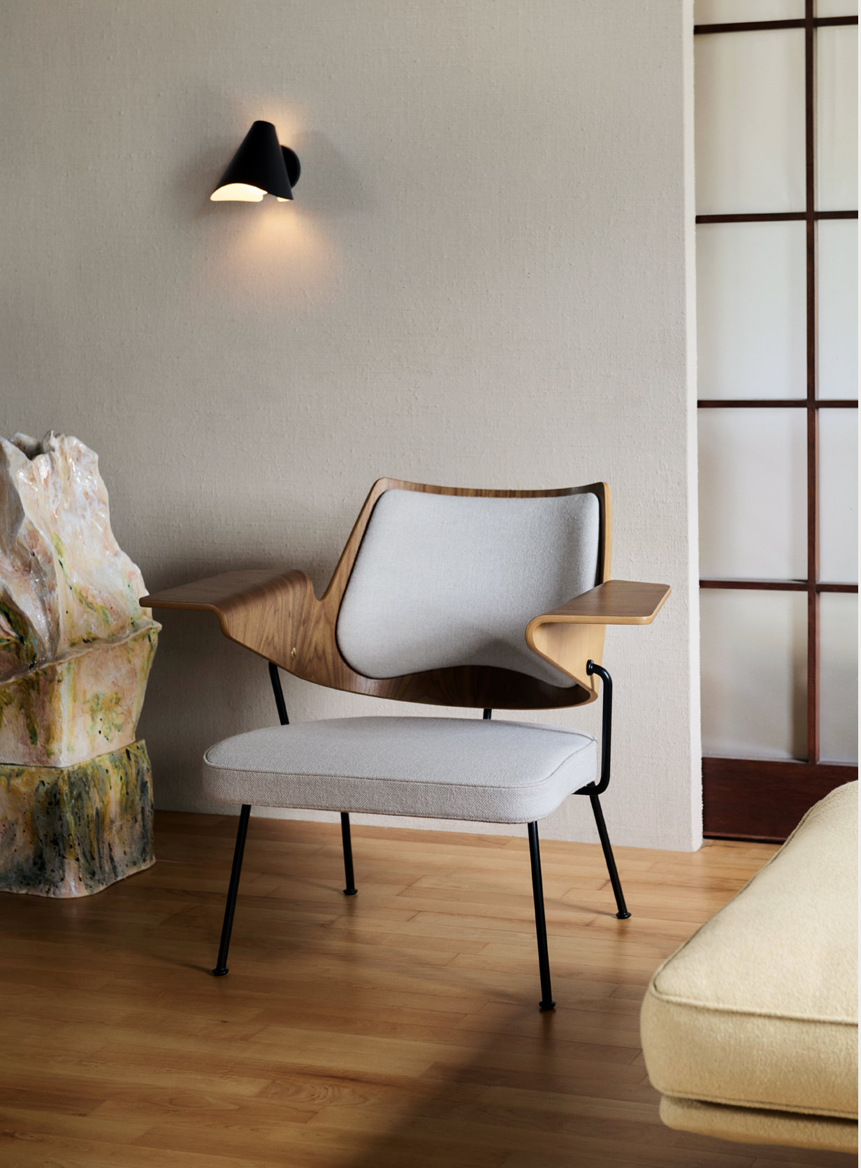 Evoking the same poetic aesthetic of the chandelier model in a more compact form, the Bonnet Wall Lamp by Space Copenhagen offers a contemporary take on a classic design. Used as a singular piece, the wall lamp serves as a compact source of illumination for bedroom and living room, in addition to providing an ambient light to hallways and corridors alike.