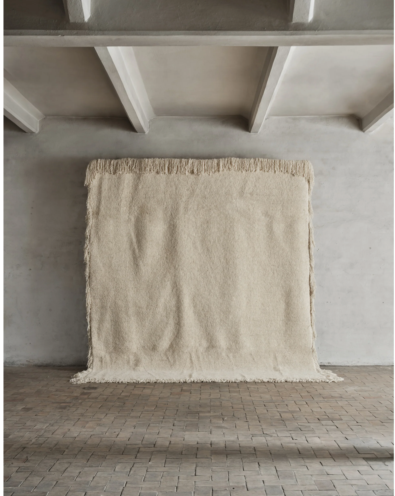 The rug is woven in natural and unbleached New Zealand wool and comes in a chalky off-white shade. An iconic piece to keep and love for a lifetime.