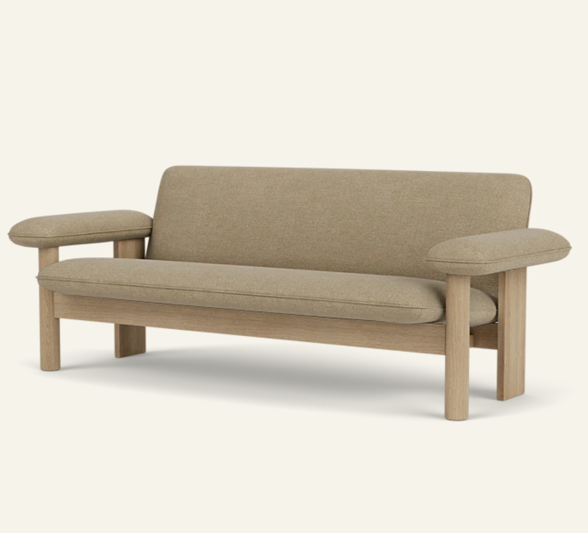 The Brasilia Sofa is a harmonious blend of Scandinavian mid-century aesthetics and Brazilian modernism. Large enough for reclining with ease yet small enough to fit compact spaces, its bold and inviting form comprises a solid wood frame with rounded front legs, exaggerated armrests and plush cushioning. Offered in three wood finishes and a comprehensive range of upholstery options, the low-back, two-seater design exudes a sense of relaxation and sophistication as a standalone piece or a part of the wider Brasilia collection.