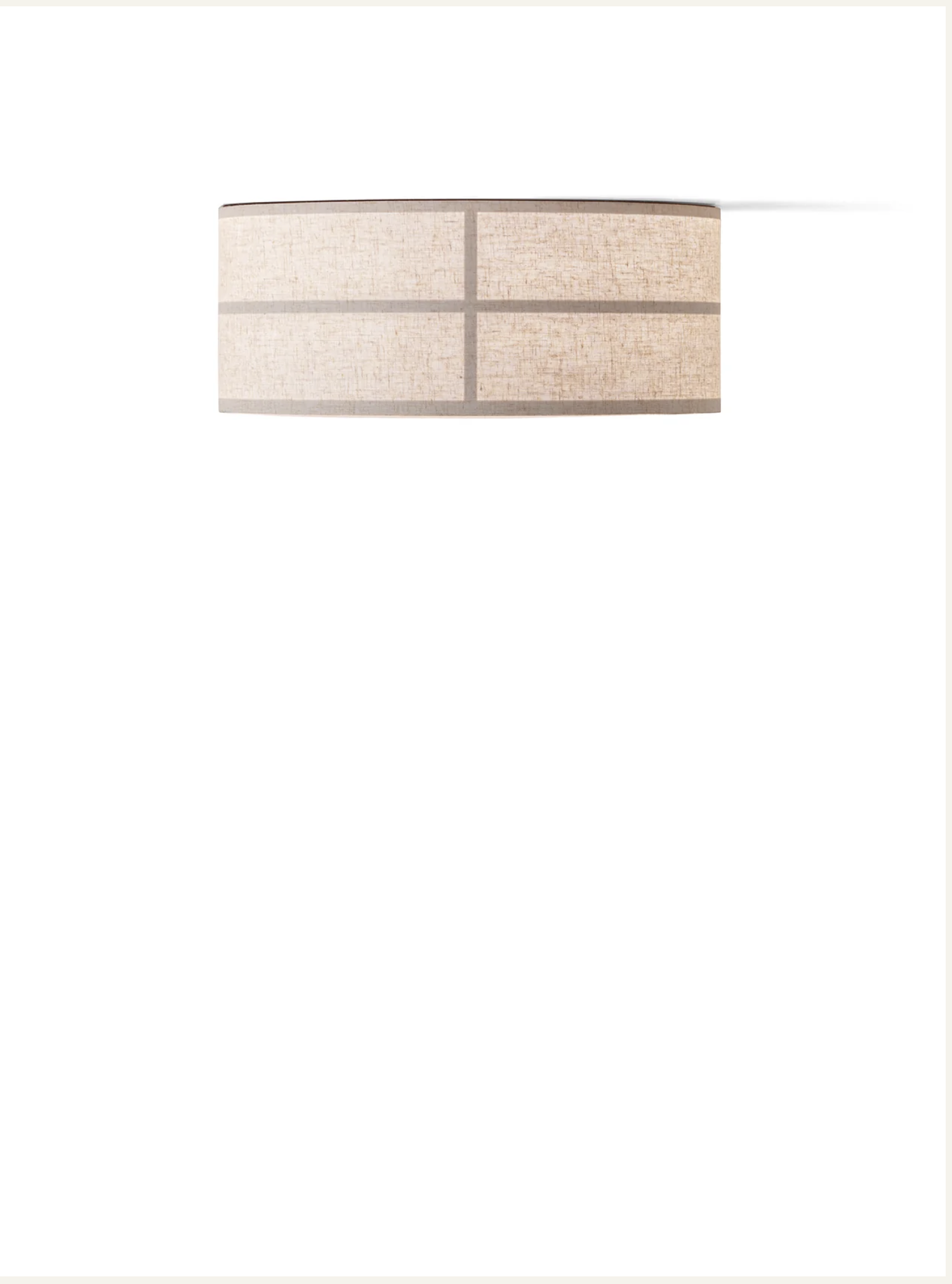 Sitting flush against a ceiling, the Hashira Ceiling Lamp reduces the characteristic elements of the lighting collection to their purest forms, creating a design that is as subtle as it is sophisticated. It emits ambient light into rooms, diffused through its textured linen shade. Bulb not included.