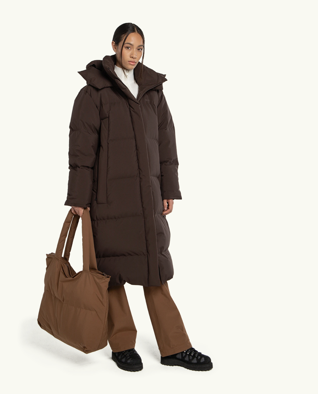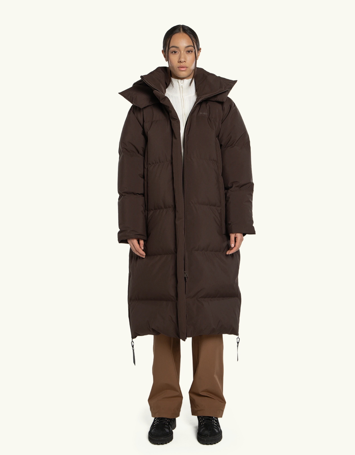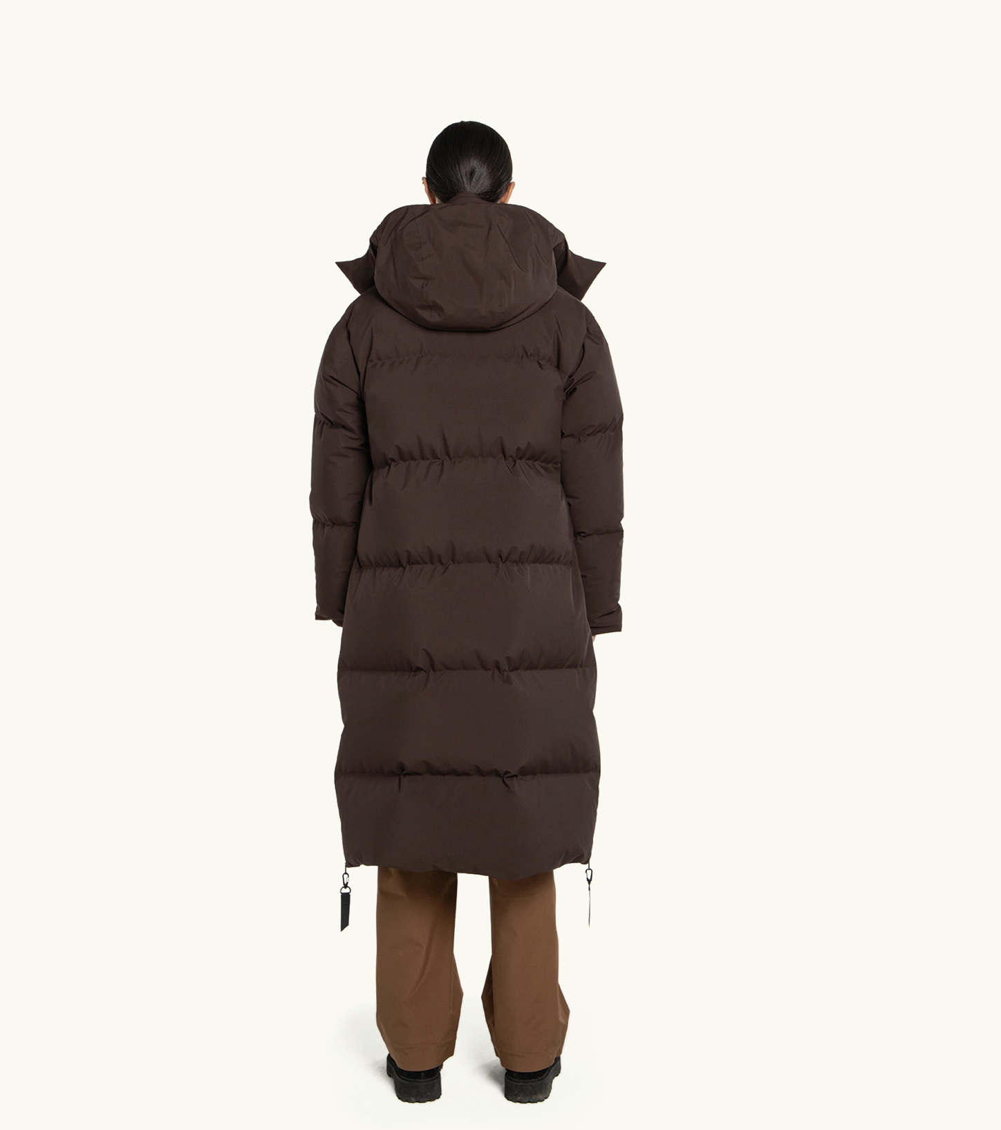 The Stranda down jacket is known for its long and oversized fit, which makes it easy to stay warm in the bitter cold. It’s soft and comfortable, almost like a wearable duvet or sleeping bag.