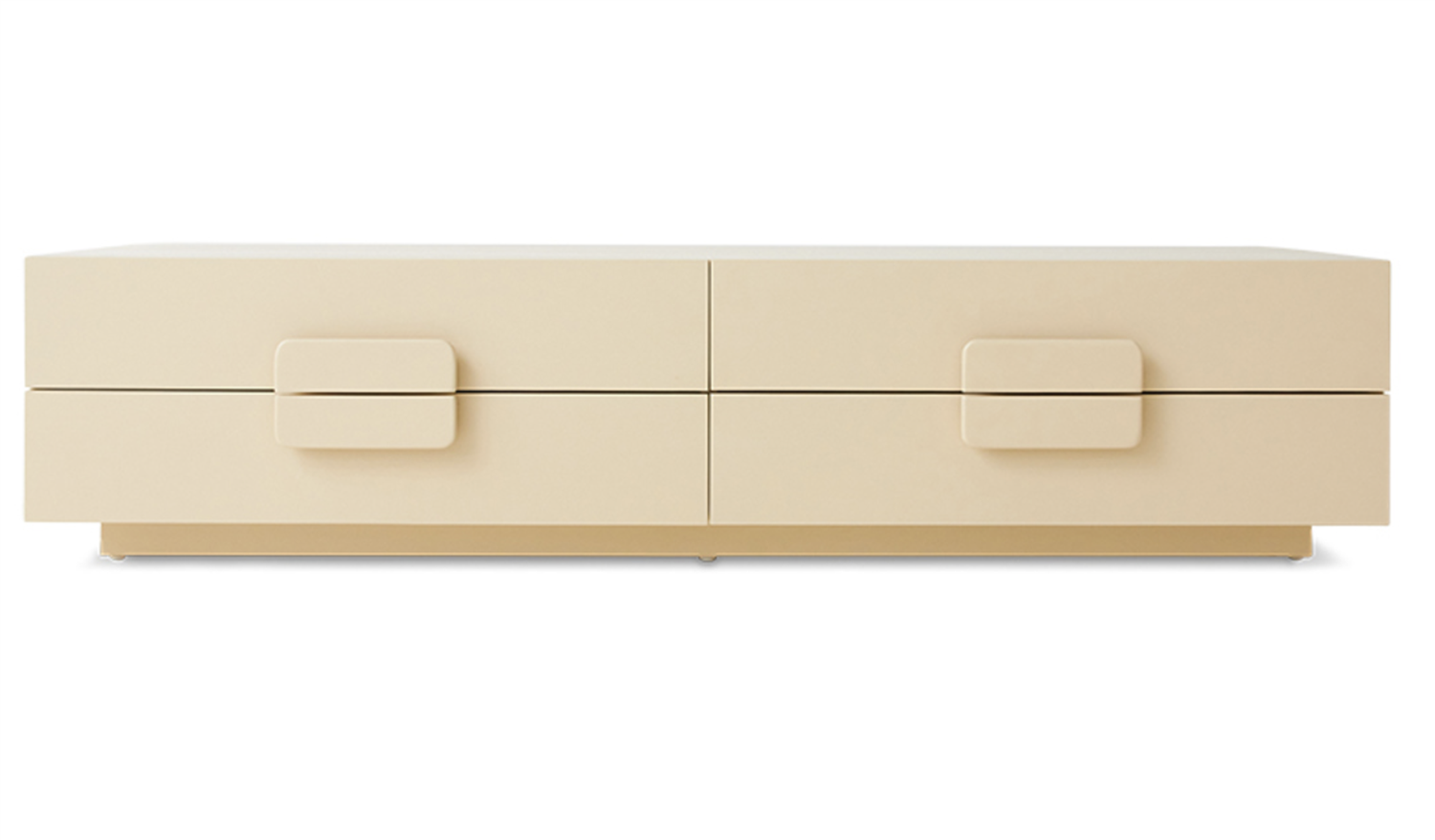 Refine your living space with this sleek and contemporary lowboard in a sophisticated cream finish. Designed with clean lines and a minimalist aesthetic, this lowboard offers both style and functionality. The spacious drawers provide ample storage for your essentials, while the distinctive square handles add a modern touch. Perfect for a living room or media area, this lowboard blends seamlessly with a variety of interior styles, providing a sophisticated and practical solution for your home.