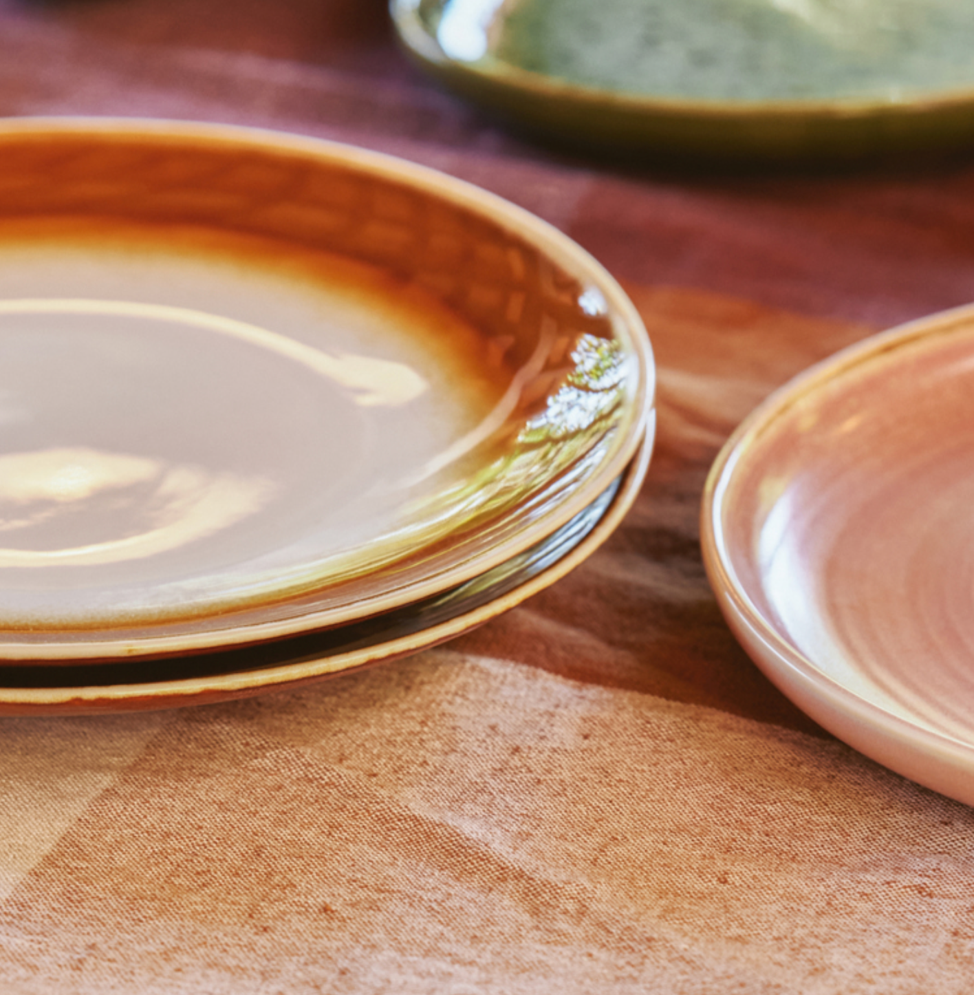 Food tastes even better when it is served on the right plate. The brighter the colours, the happier we get. Our 70s ceramic dinner plates are just right, thanks to the lively colour combinations and unique finishes that give the plates an imperfect look.