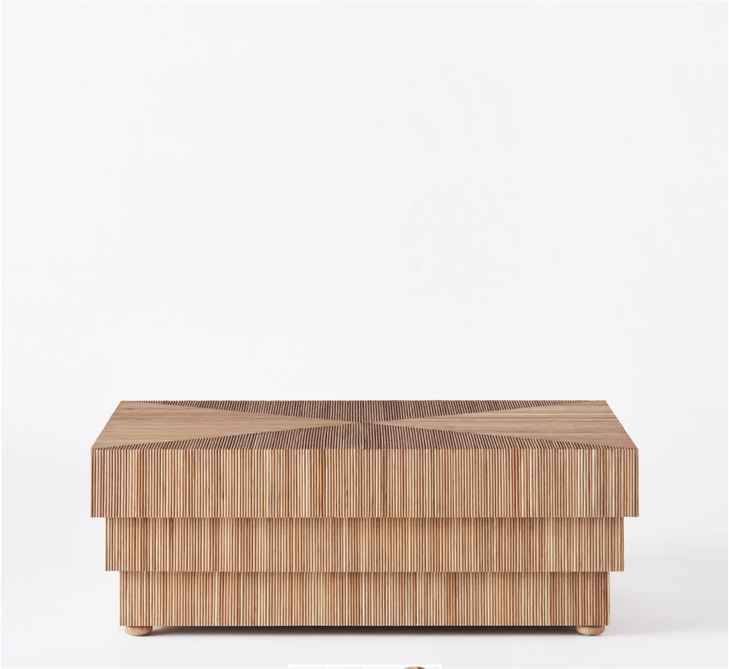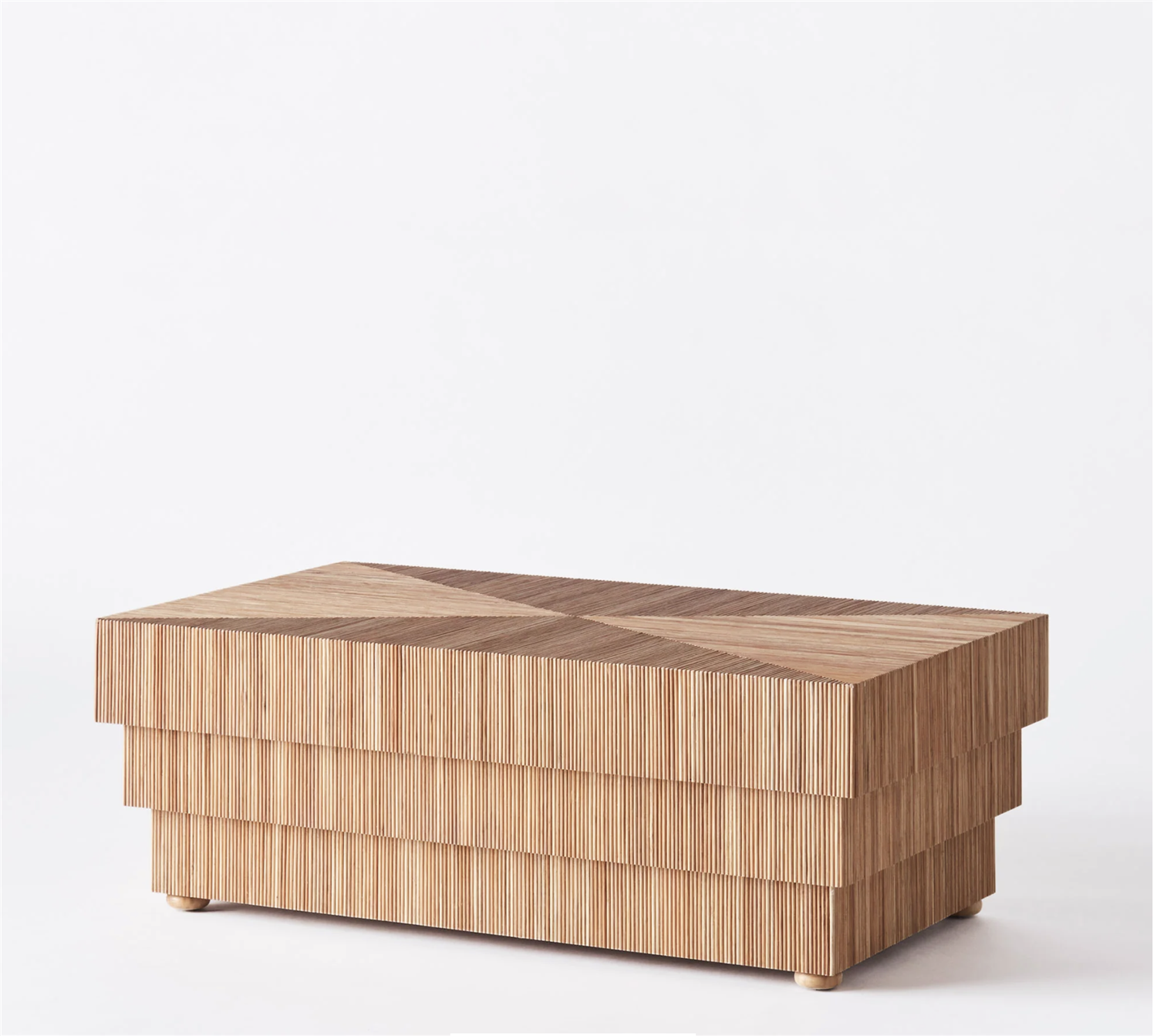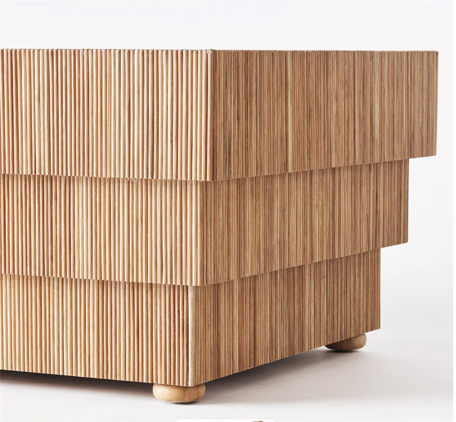 Mikado Coffee Table är ett modernt sidobord med en vintagekänsla. Dess unika design med lager på lager i en rektangulär struktur, tillverkad av naturligt rotting, där varje lager varierar något i storlek, tillför en touch av modern vintage i vilket rum som helst. Bordets topp visar upp ett iögonfallande geometriskt mönster som förstärker en dynamisk visuell detalj. Ett unikt soffbord, perfekt för placering i centrum av ett vardagsrum eller en lounge.