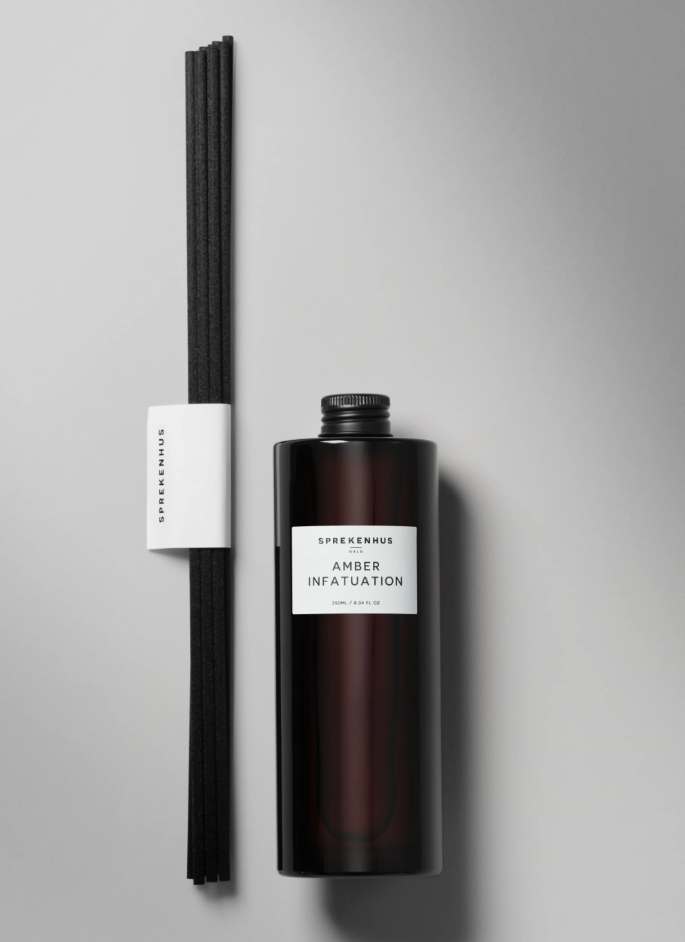 Sprekenhus home fragrance diffuser kombinerer ekte blomsterraffinement med høy kvalitet. Notene løfter sansene og omgivelsene. Den vakre glassflasken er også en stilig måte å dufte hjemmet på.