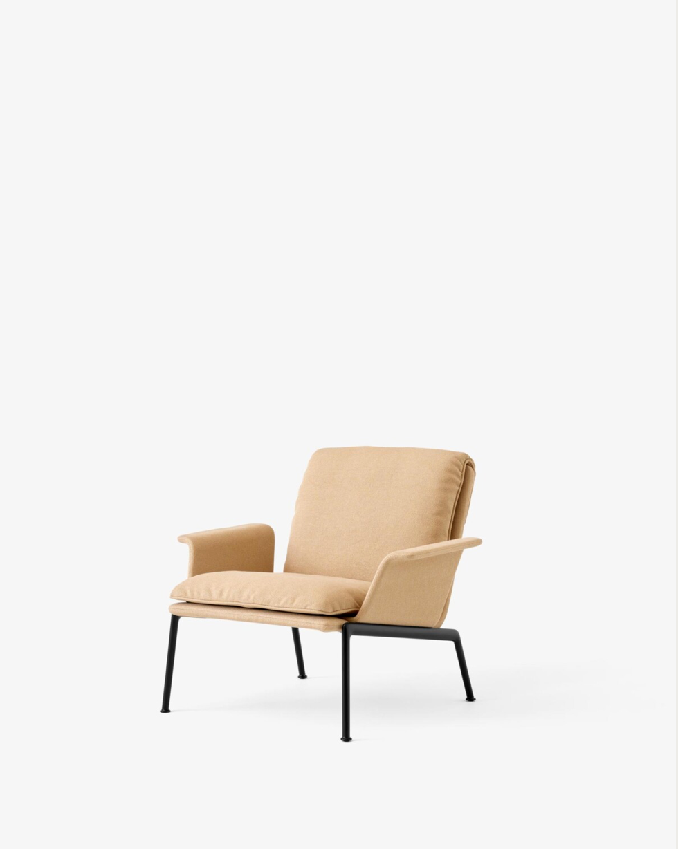 Characterised by its plush cushions and sleek, cast aluminium legs, the Muno lounge chair offers the same compelling experience as its taller counterpart in a more compact form. Revolving around a single cushion, the chair’s seat and backrest appear as though draped over the frame to achieve a relaxed yet contained expression.