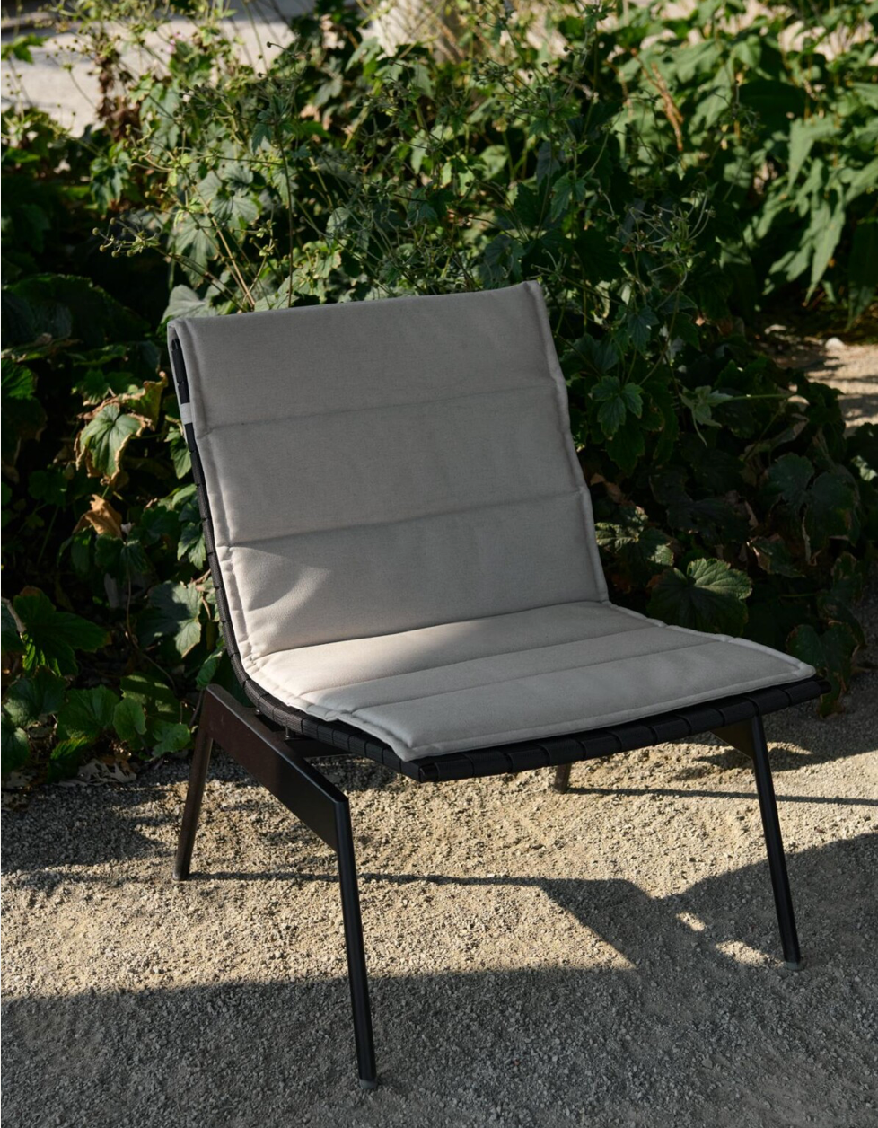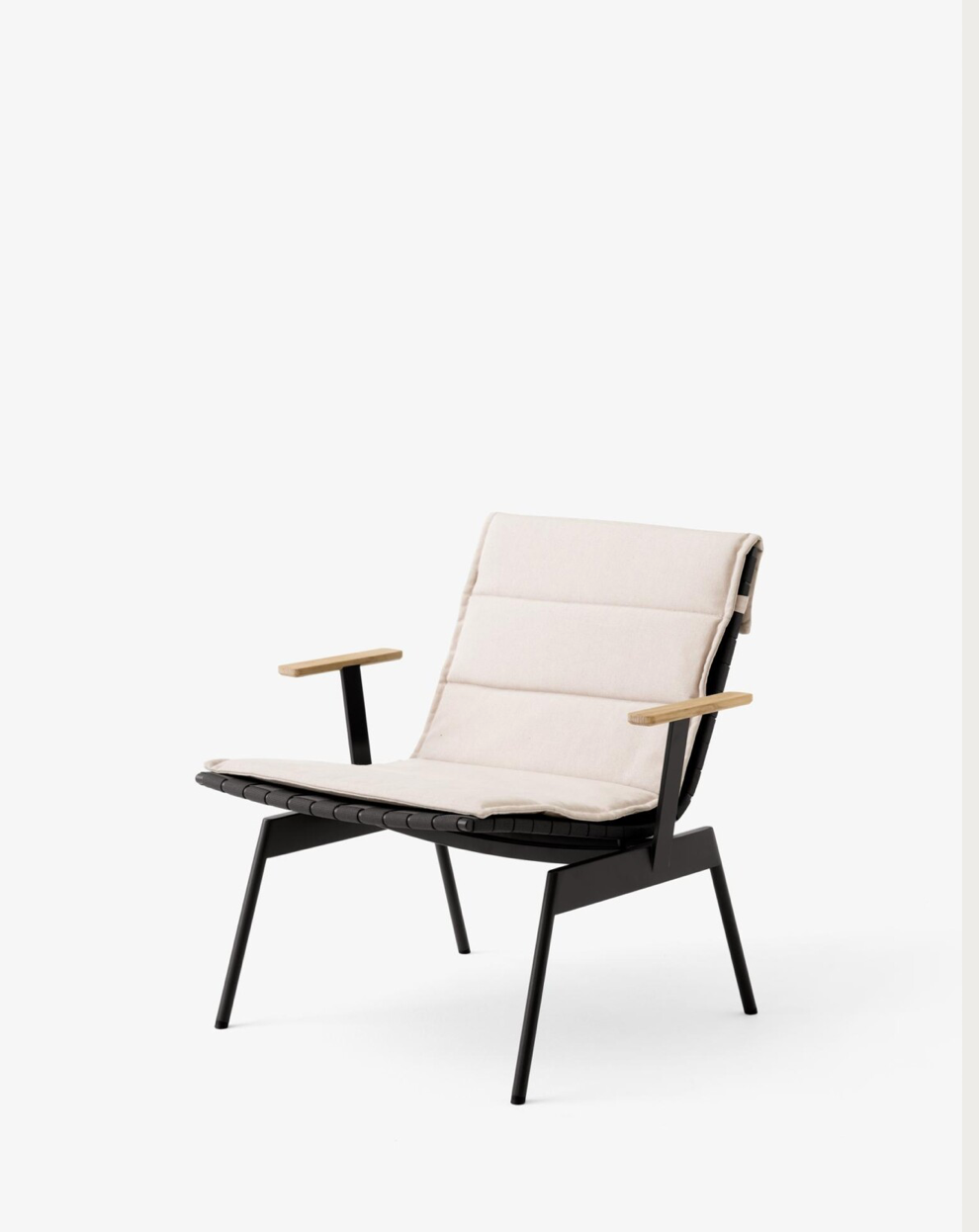 To add an additional layer of comfort to the Ville lounge chair, a precisely tailored cushion has been developed in Heritage Papyrus – a neutral, beige-toned fabric, and Heritage Char – a bolder, dark fabric. The fabric is made from 50% recycled material, certified with Greenguard Gold and is weather, pilling and abrasion resistant.Product Description