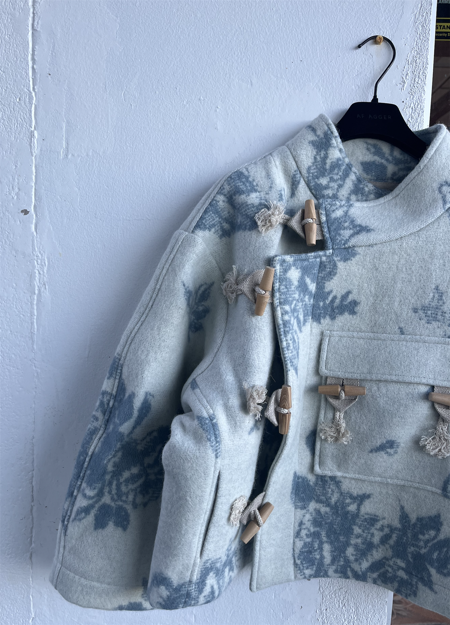 KLIPPAN BOILED WOOL JACKET WITH ASYMMETRICAL WOOD TOGGLES CLOSURE, A LARGE FRONT POCKET AND TWO SIDE POCKETS.