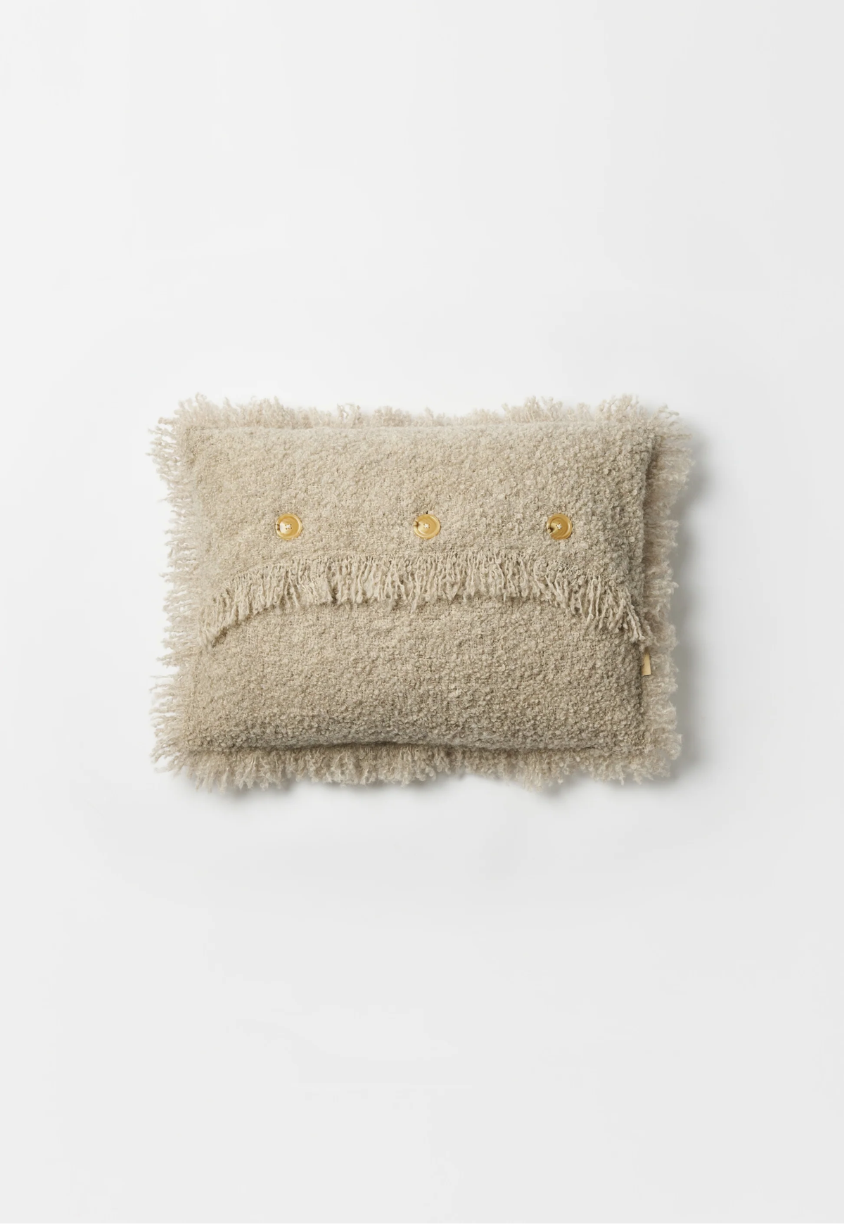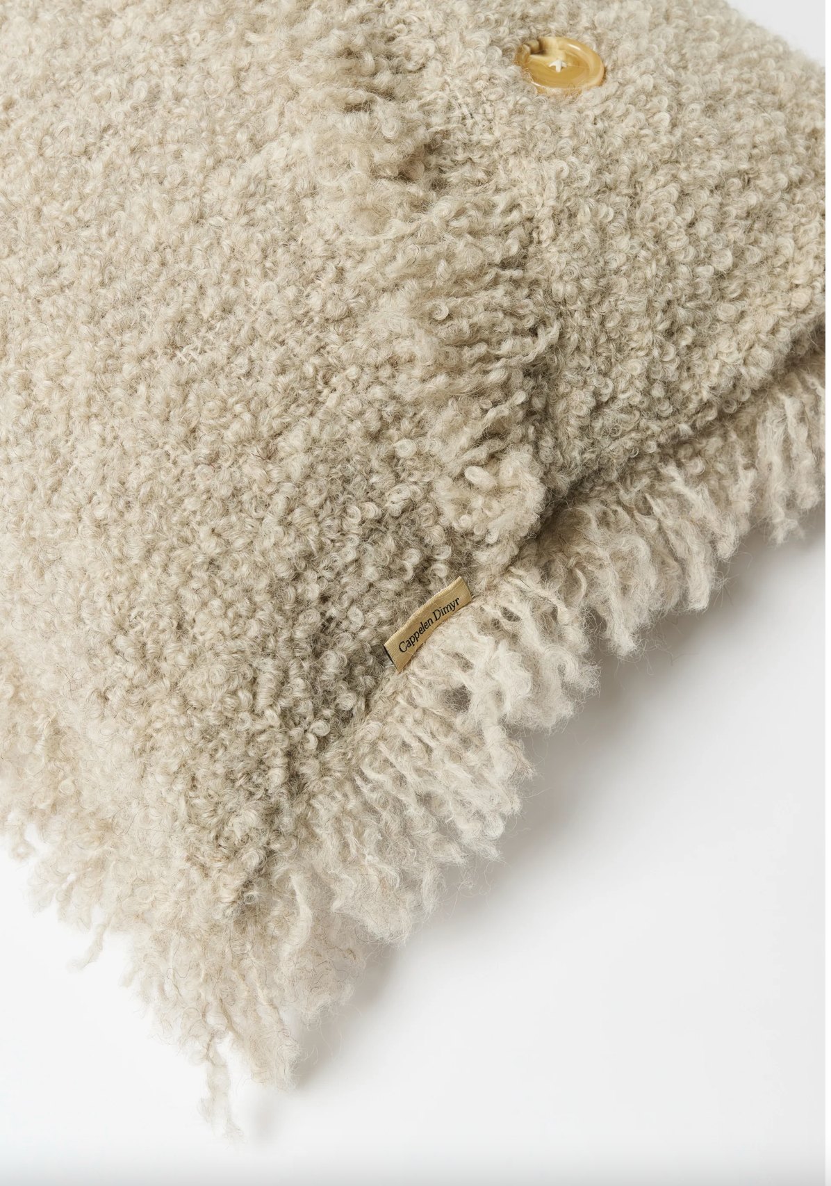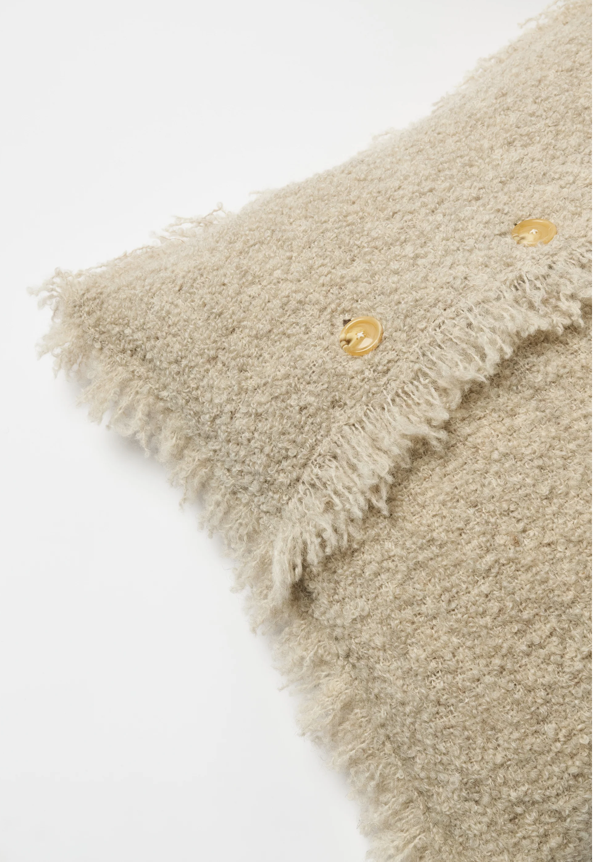 Crafted from the finest natural wool, our cushions feature short fringes around all edges, elegant backside buttons, and a recycled filling for a sustainable touch. With its soft texture and timeless design, it brings effortless bohemian charm to any space.