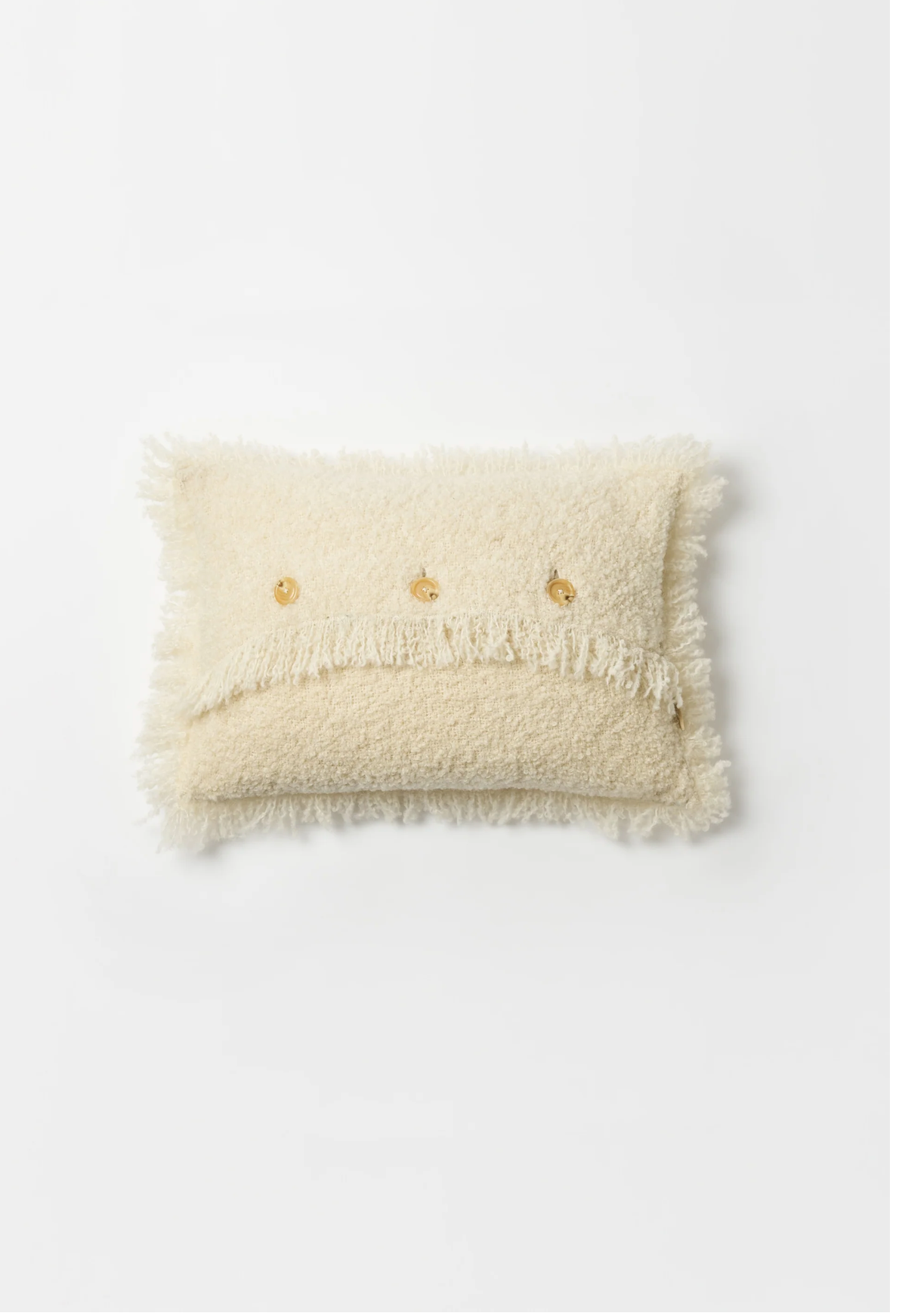 Crafted from the finest natural wool, our cushions feature short fringes around all edges, elegant backside buttons, and a recycled filling for a sustainable touch. With its soft texture and timeless design, it brings effortless bohemian charm to any space.