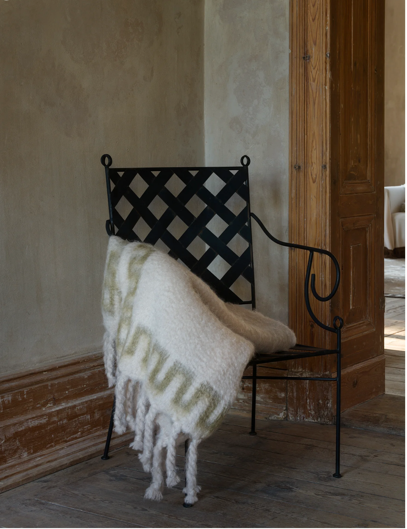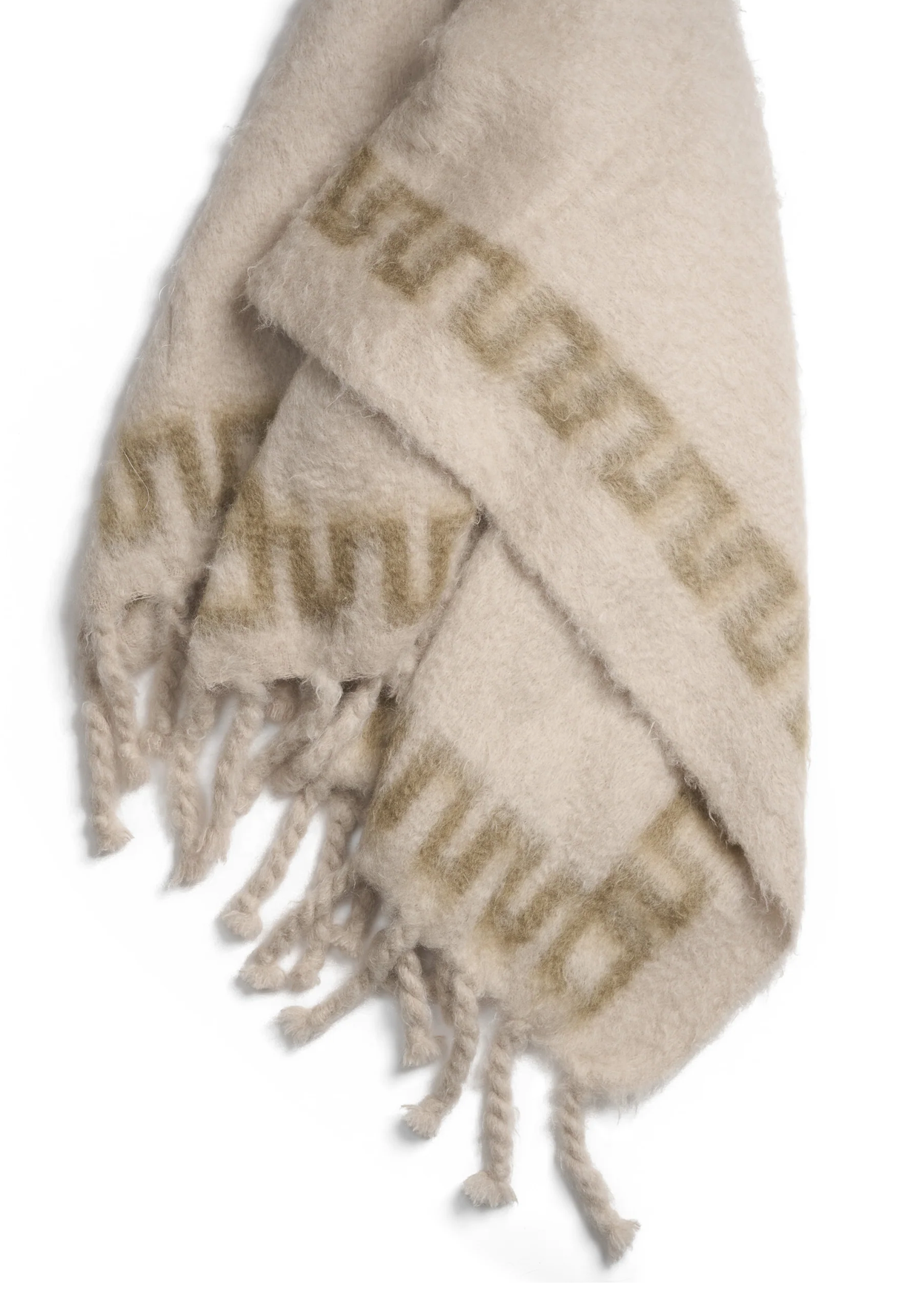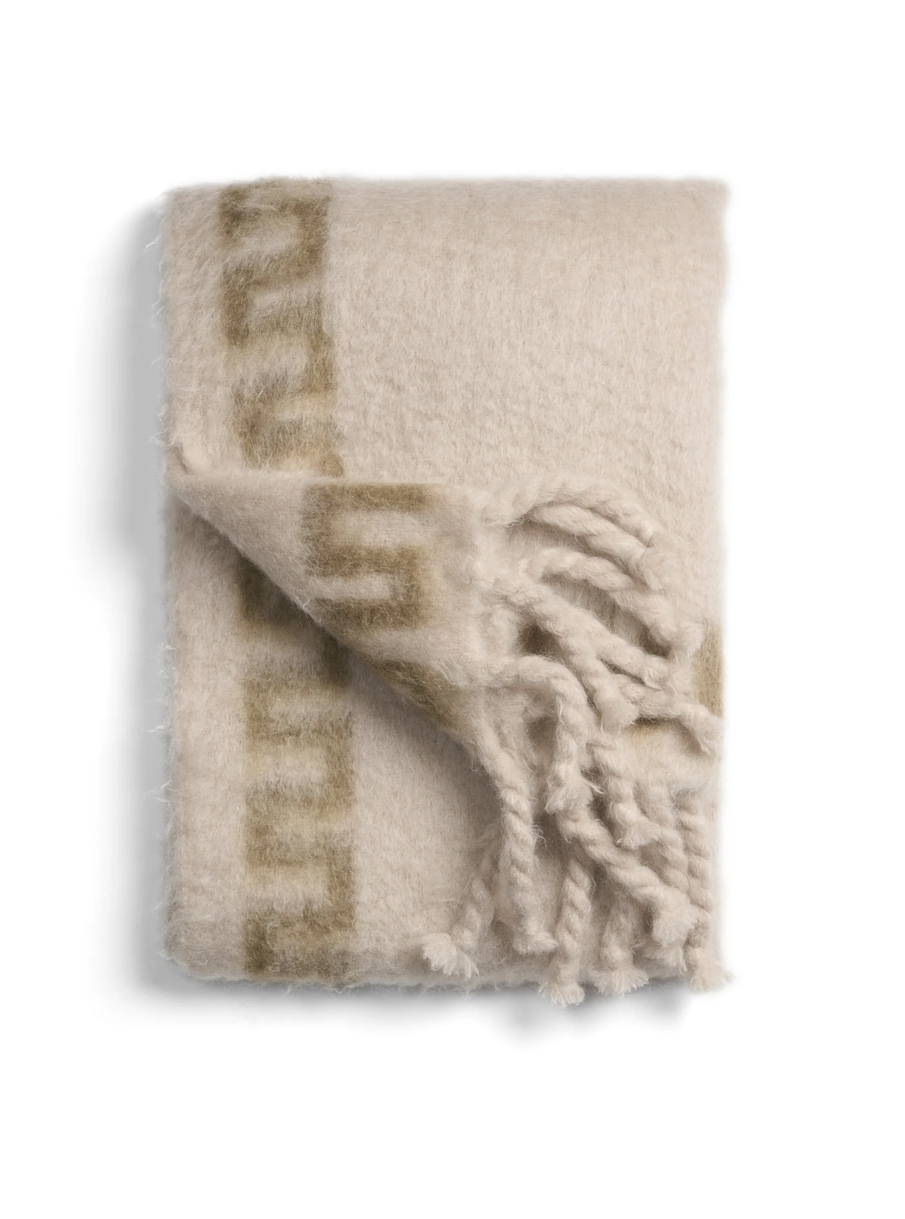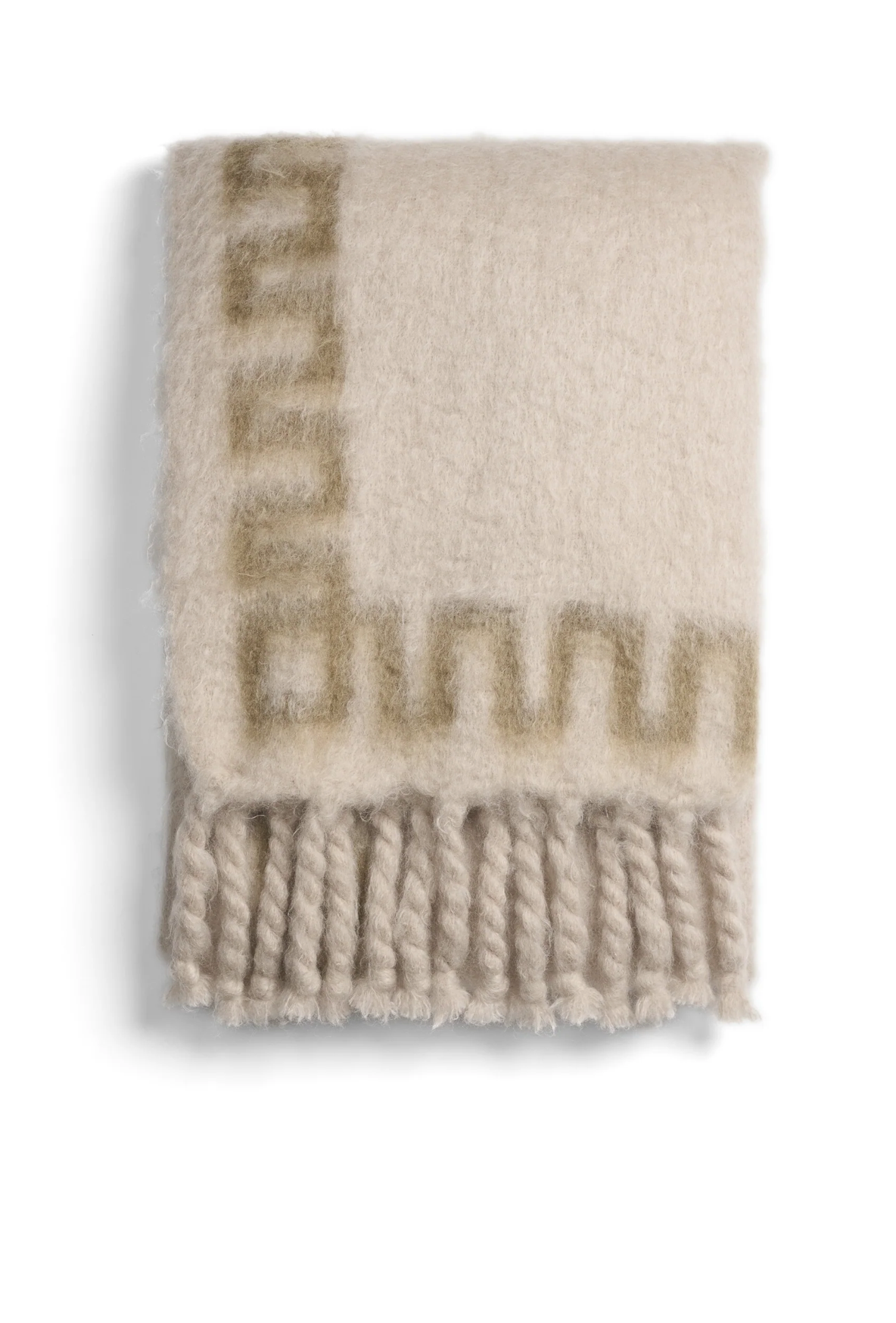 Cappelen Dimyr Mohair Throw is a luxurious addition to your living room, crafted to elevate comfort and style. This throw combines soft, light beige tones with an elegant subtle green frame, embodying our commitment to sophisticated, timeless design. Made from high-quality mohair in Spain, it offers warmth with an ultra-soft touch. With chunky fringes that add texture and a sense of refined coziness, this piece is perfect for any interior.