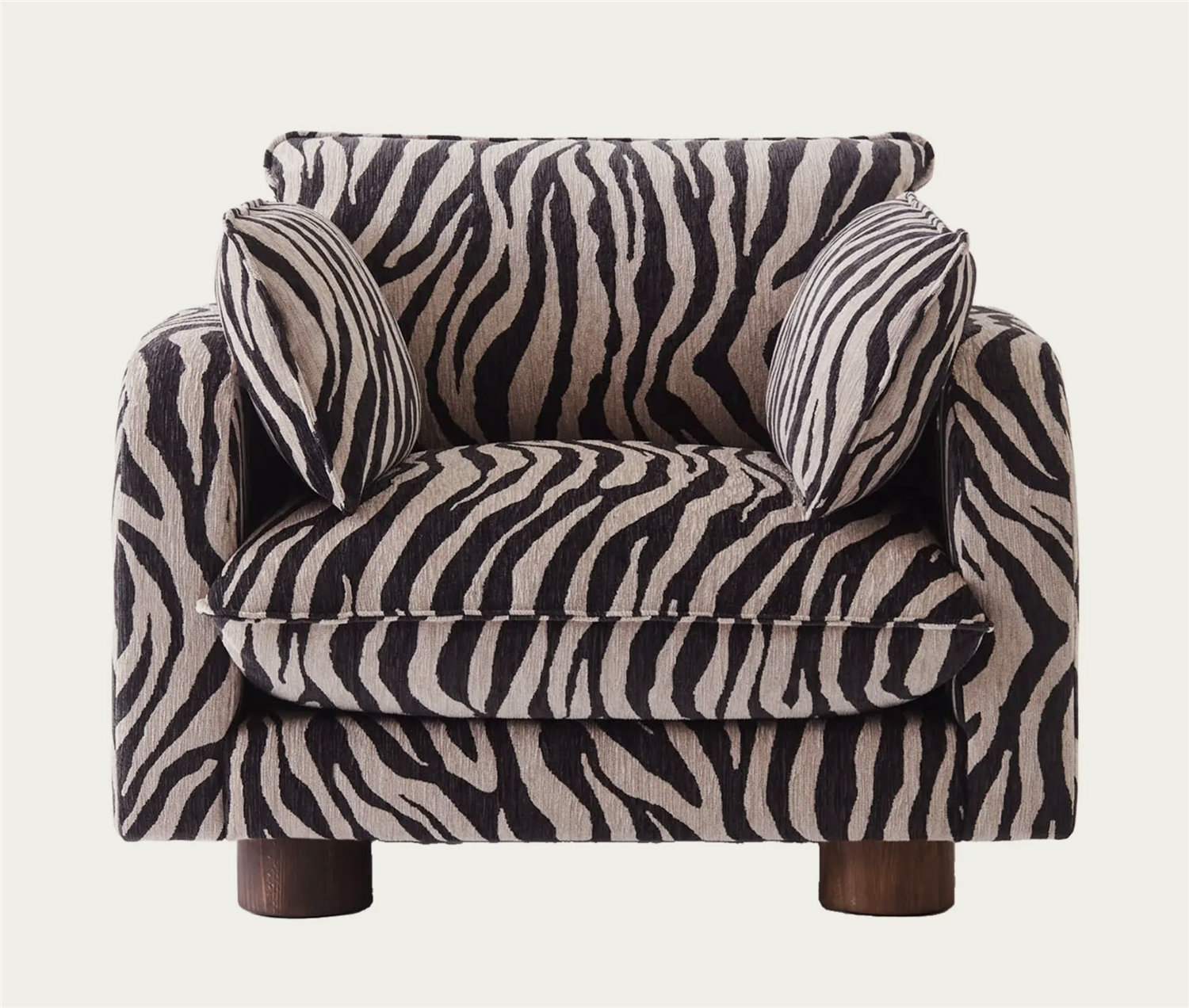 Miles is a series of furniture designed by MER Arkitekter, a Stockholm-based architecture firm. Miles Armchair Boucle is an armchair characterized by its large cushions, rounded corners, and cylindrical feet. The frame is made of solid spruce and plywood while the padding consists of down, silicone marbles, and foam. In this version, the armchair is upholstered in a boucle fabric from James Malone.