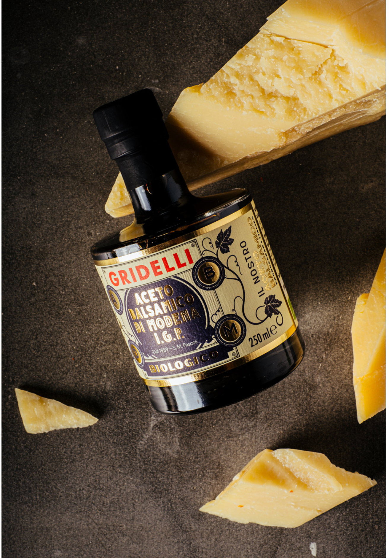 En ekologisk I.G.P. -märkt balsamico gjord av solmogna röda druvor från Emilia- Romagna. Balsamicon är lagrad i Modena och innehåller varken tillsatt socker, färgämnen eller övriga tillsatser.