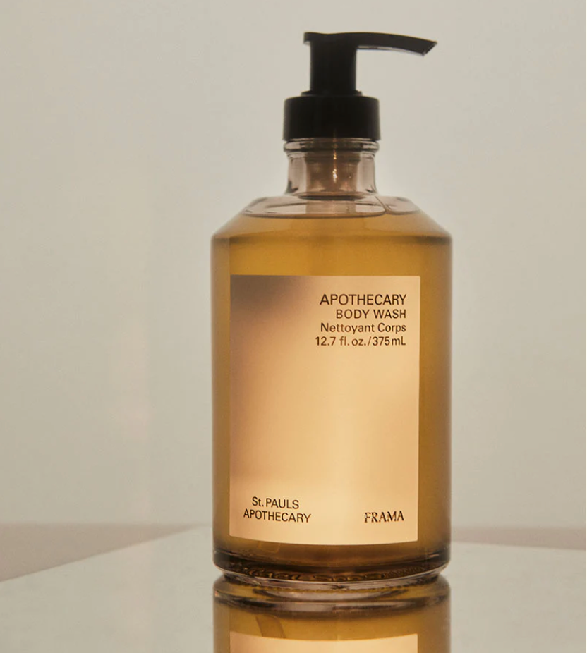 The Apothecary Body Wash from the Danish lifestyle brand Frama is a mild, scented cleansing gel containing natural and organic ingredients. The St. Pauls Apothecary series from Frama is made locally in Denmark and comes in a reusable Italian glass bottle.