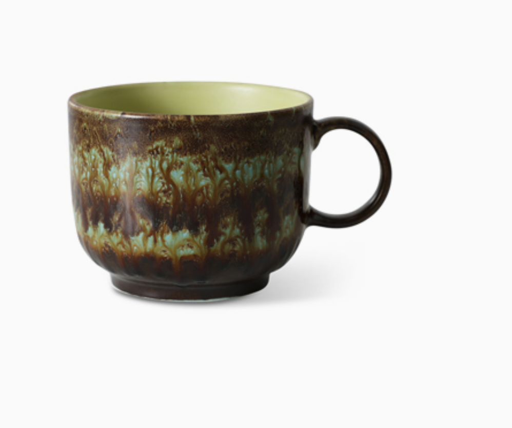 A welcome addition to our beloved 70s ceramic collection: the generously proportioned tea cup with handle. Inspired by traditional tea ceremonies from various cultures, this mug has been reimagined to offer a contemporary yet timeless design. With its tactile glaze and comfortable handle, it's a must-have for any tea lover - perfect for creating your own daily ritual.