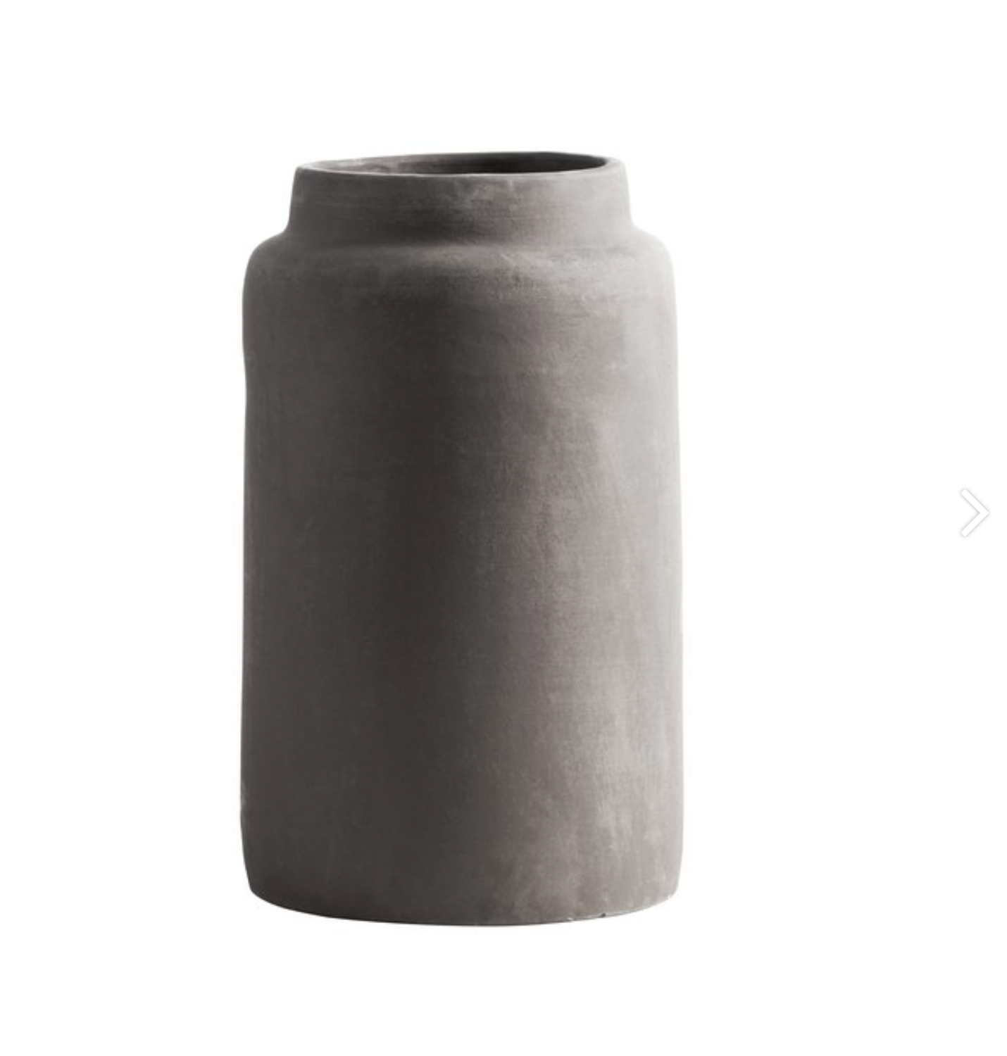 Æstetisk lerkrukke med en detaljeret overflade, der passer til både sommerfarver og efterårets mørke toner. Krukken har en smuk, enkel form og er perfekt til planter, dekorative grene eller blomster.