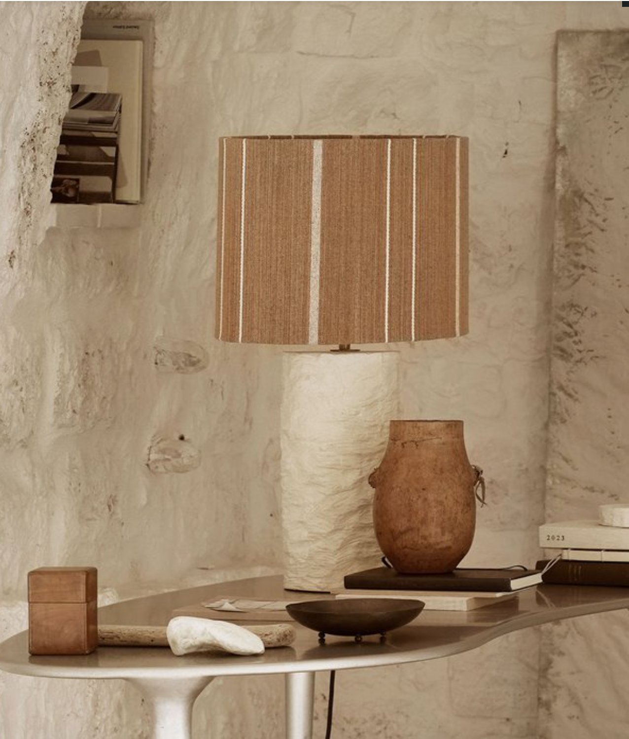 Our Hatilamp-pillar is a table lamp with a classic form and a rustic and uneven surface, providing the lamp with a natural and earthy appearance with soft and sensuous colours.