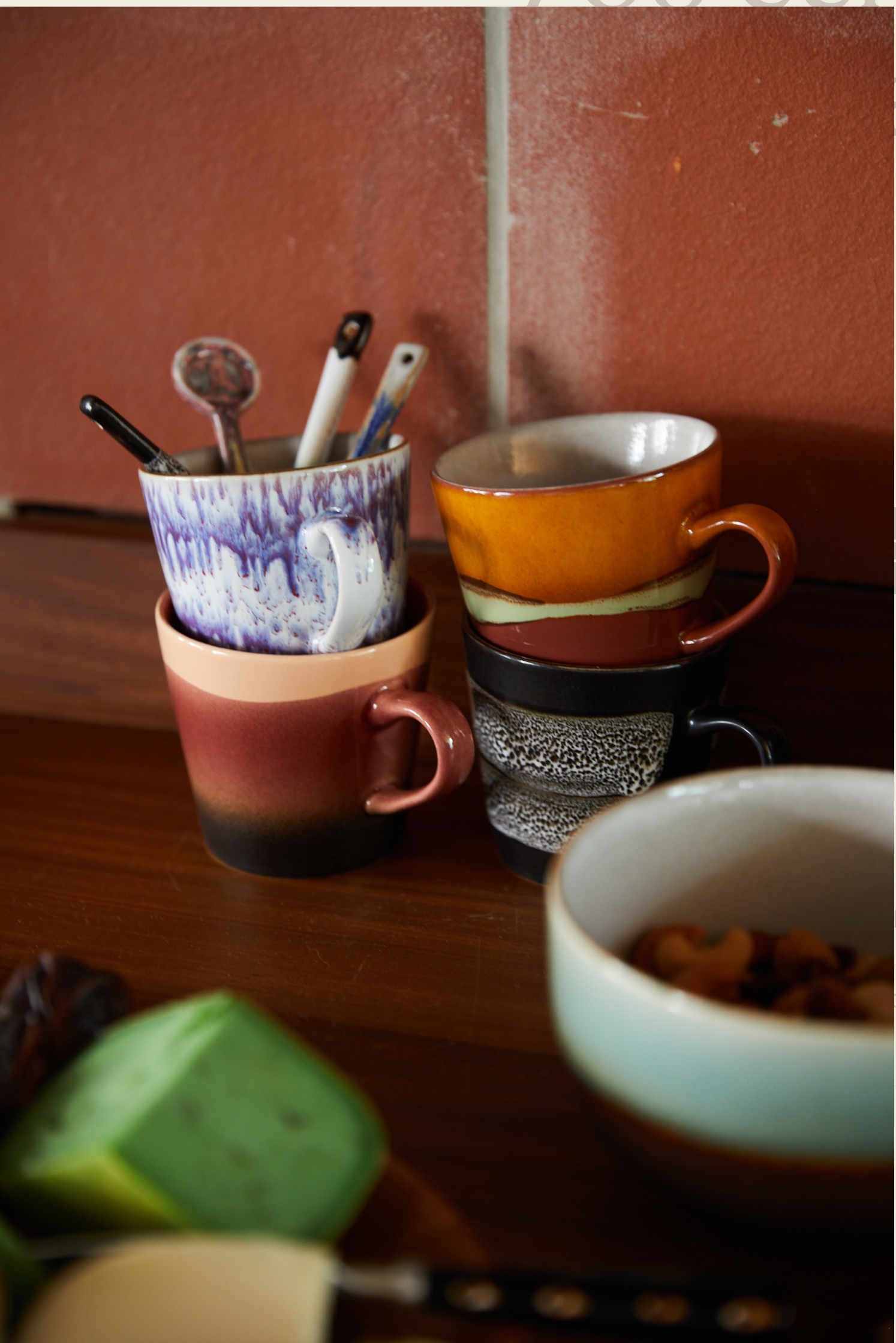 An all-time favourite - the old-fashioned drip, the trendy Americano or the perfect slow coffee. The Americano mugs have a 270ml capacity, so you're always right. Thanks to the earthy elements and natural colours, this is the most relaxed range in the retro 70s ceramic collection. The exciting colour compositions and textured, hand-finished surfaces make each piece unique.