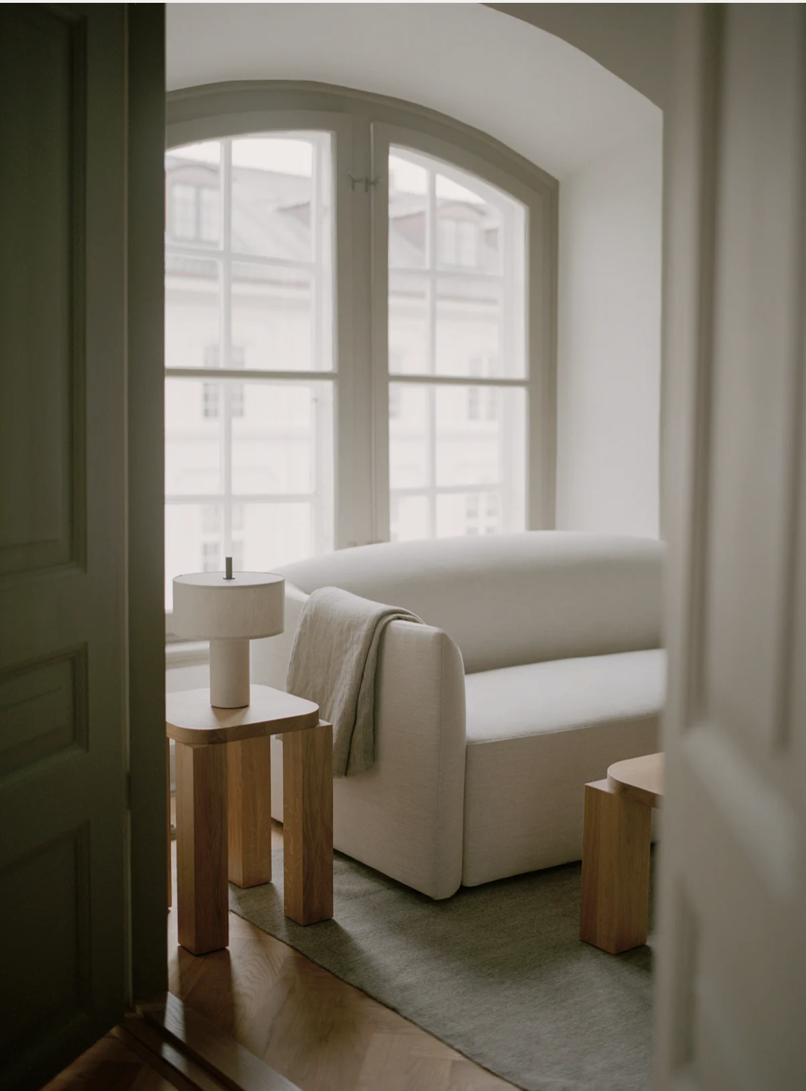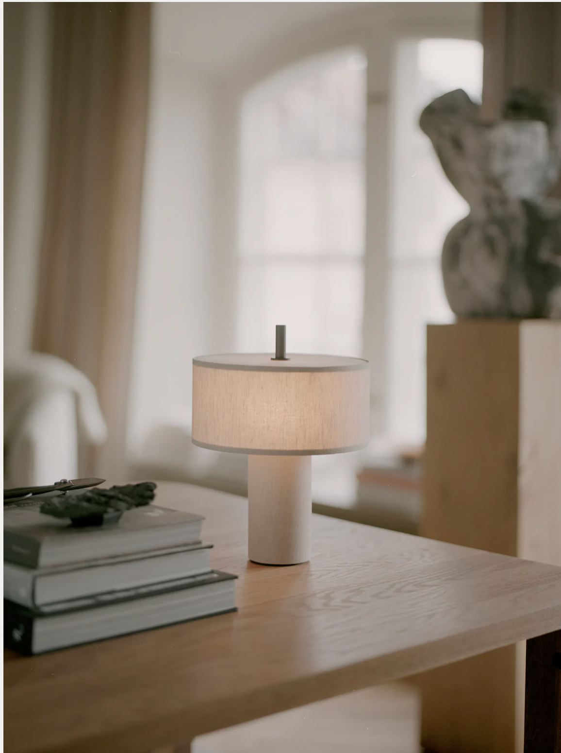 The Margin Portable Table Lamp is perfectly sized to bridge the gap between a traditional table lamp and a portable light source. Staying true to the graphic volumes of the series, Margin now takes shape as a thoughtfully designed ambience light. Not only is it wireless, allowing you to place its warm glow wherever you wish, but the light is also easily adjusted to your preference with the integrated touch dimmer and three different colour temperatures. Place it on your bedside table, bookshelf, or windowsill, where its soft linen exterior and tuned light will add tactility and warmth.