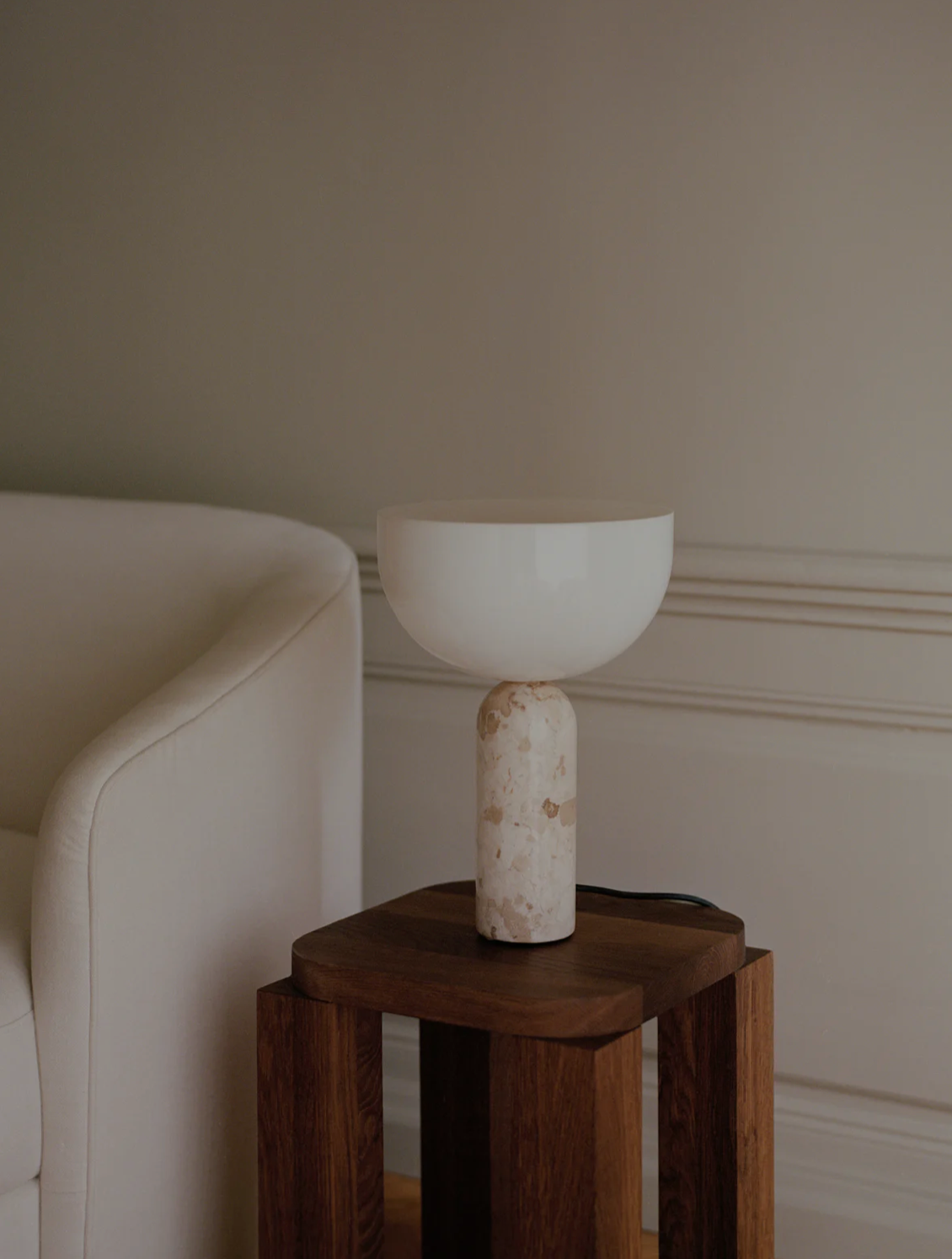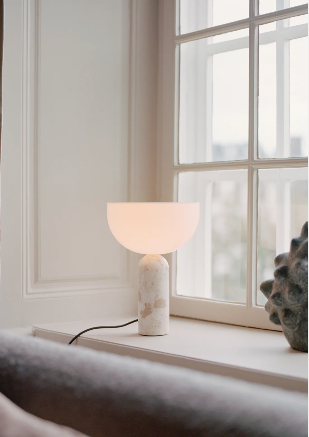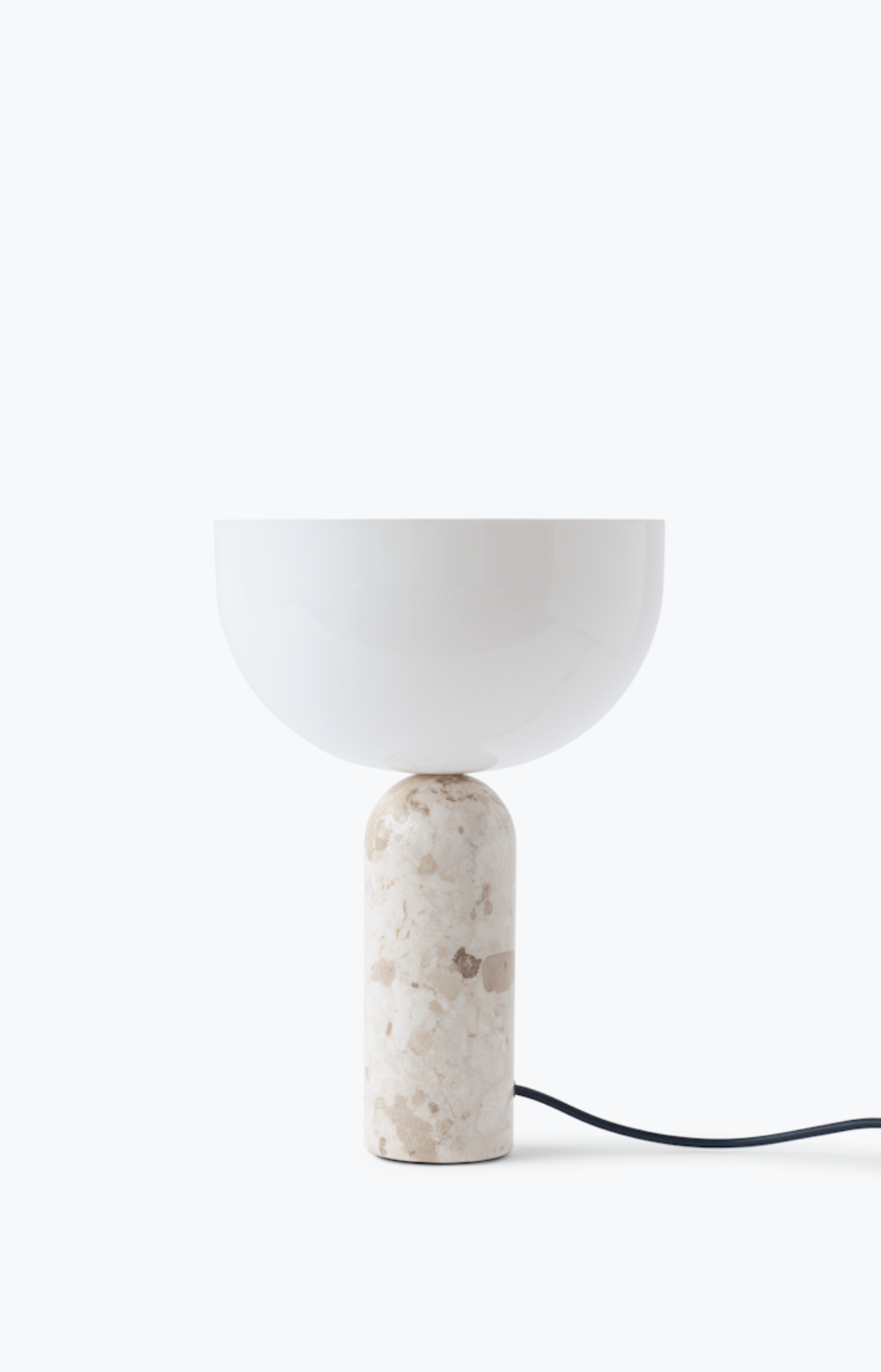The Kizu Family transforms with new additions featuring Kunis Breccia Marble, a natural stone characterised by its medley of scattered mineral fragments and gentle colours. Its raw beauty is countered by the polished finish and high-white shades, with the creamy colour tones delivering a soft interpretation of the iconic “kiss”; the precise meeting of the lamp’s two sculptural shapes. The entire Kizu family – the Kizu Table Lamp in small and large and Kizu Portable Table Lamp – now shines with the subtle attitude and timeless perspective of this new material meeting.