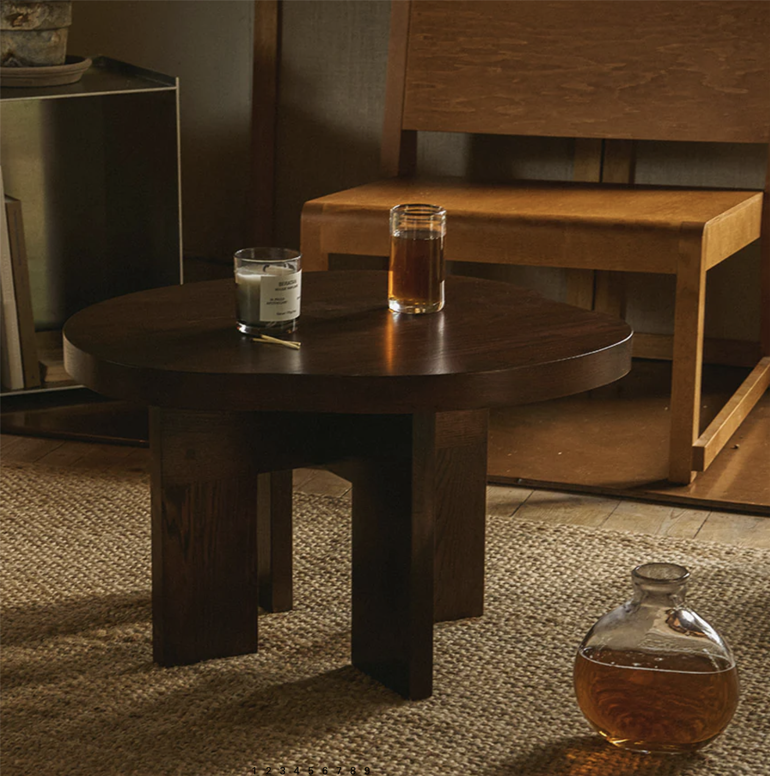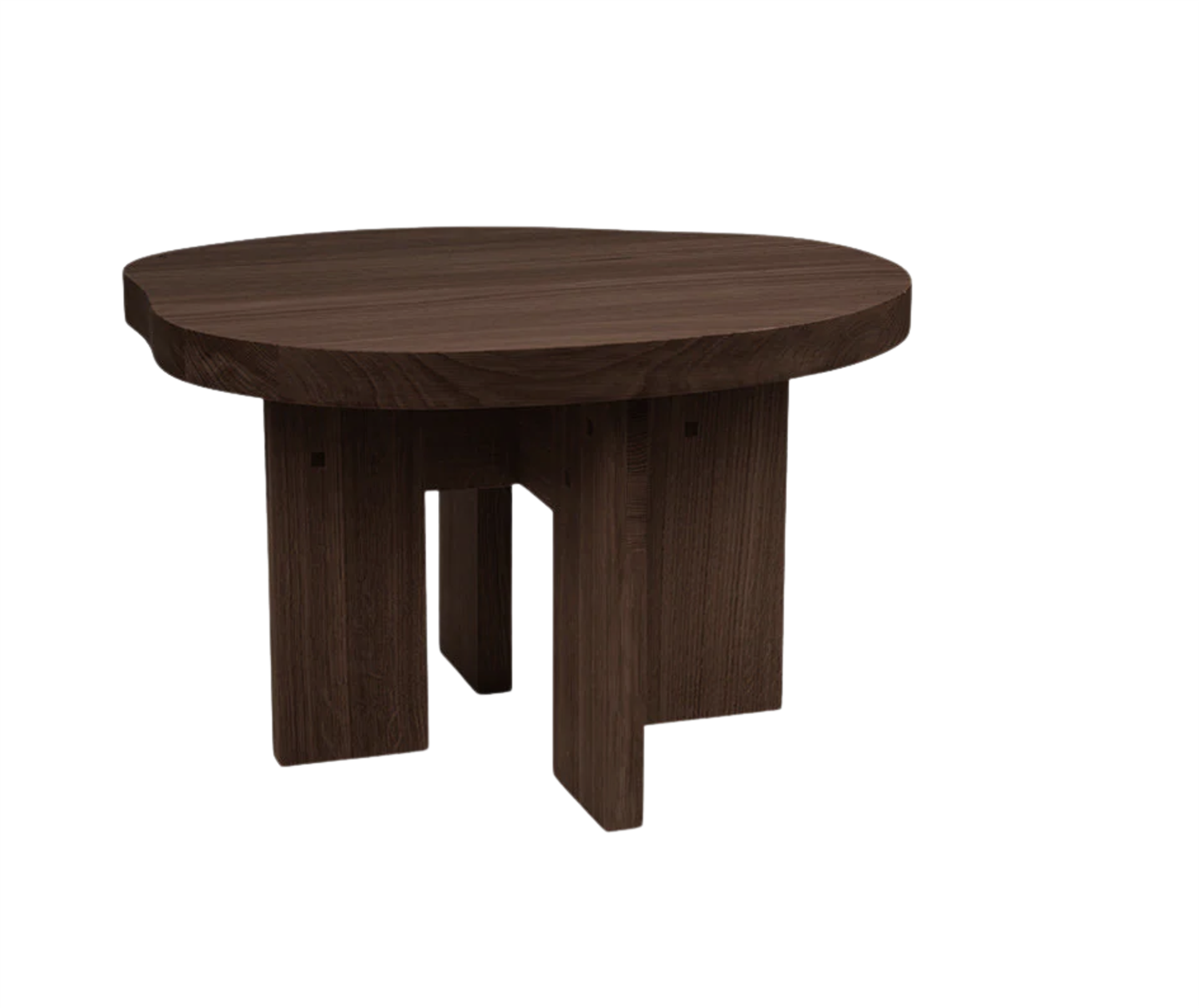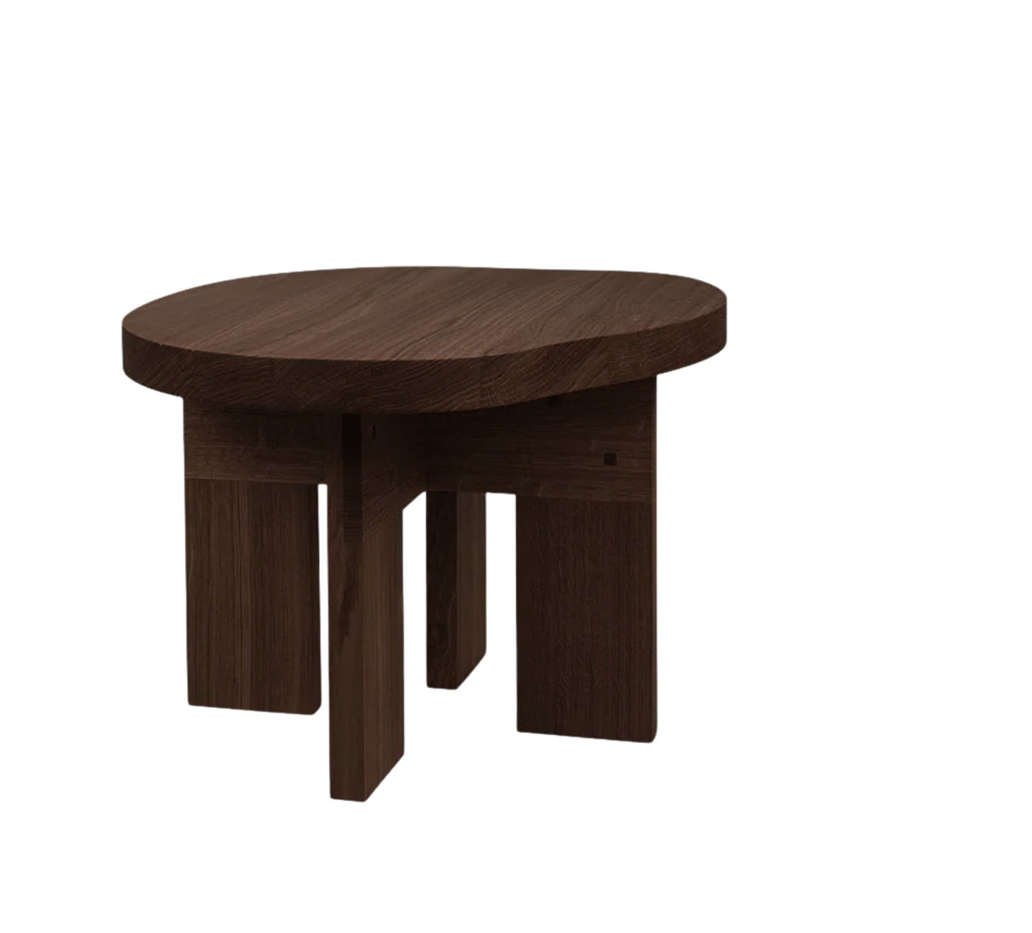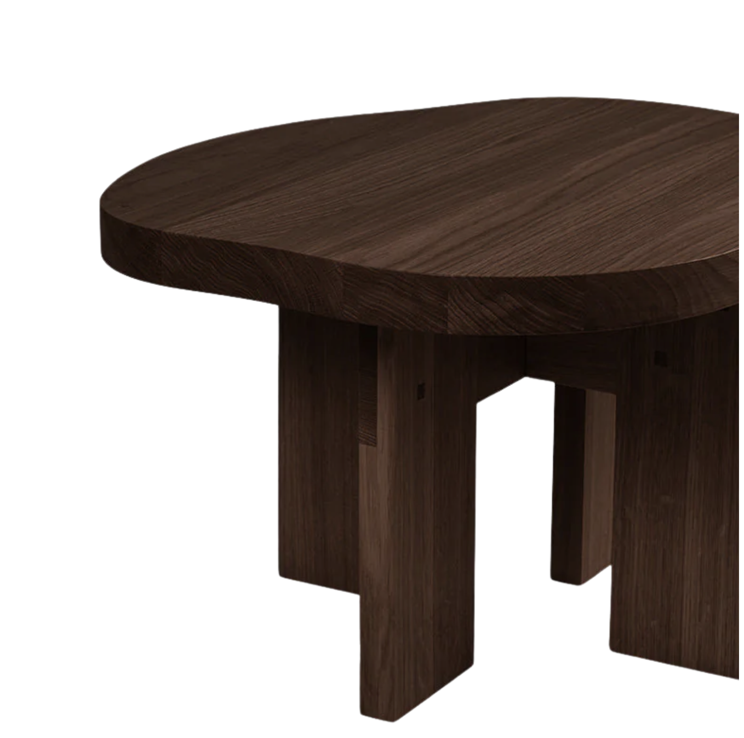 The Farmhouse Side Table Pond in dark oak is a uniquely sculptural and organic pond-shaped table design featuring a rich, deep finish and sleek aesthetic. Crafted in high-quality solid oak, supported by trestles, and inspired by traditional farmhouses with a rural aesthetic, the low wooden table serves as a side furnishing for the living room or bedroom.Material: Solid oak with knots