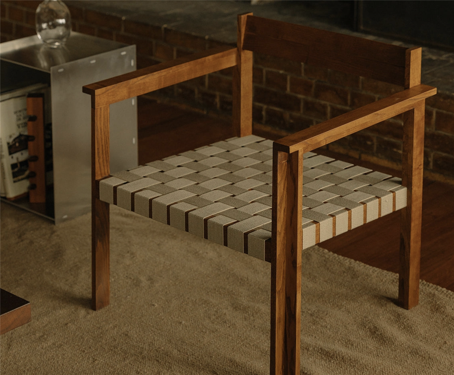 Inviting rest and quiet reflection, the Symmetry Easy Chair introduces a new form to the series. Lower, broader, and with a more relaxed posture—inviting its user to adopt the same. A reference to traditional Danish and Scandinavian furniture with its use of webbing, the chair expands on the Symmetry Series with new use of material that echoes the rhythmic language of the series foundation. Both functional and tactile, the Symmetry Easy Chair is grounded in tradition while remaining materially honest and visually light.