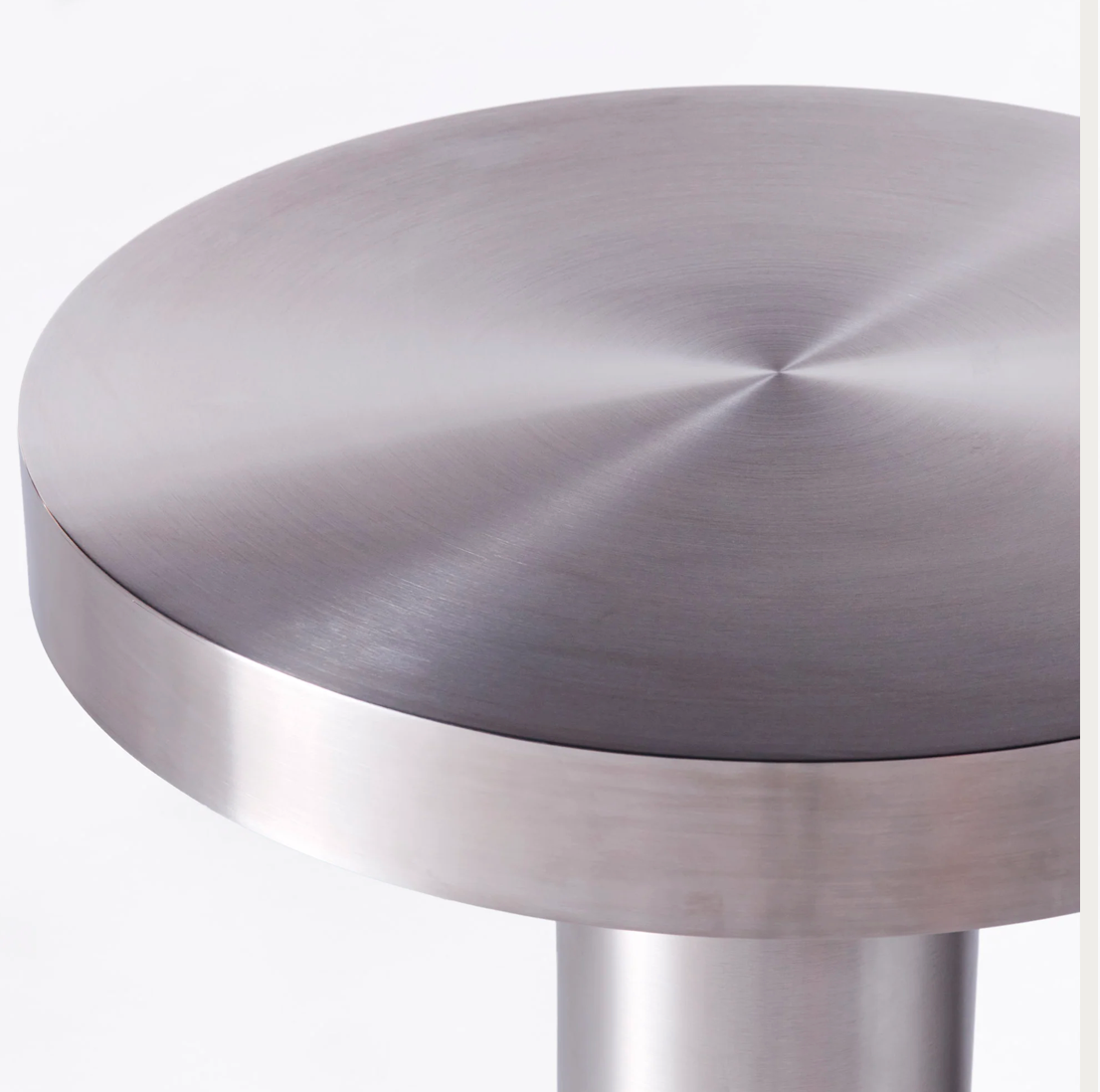 Cufflink Side Table är ett stilfullt och mångsidigt tillskott till vilket rum som helst, inspirerat av designen av manschettknappar. Detta statement bord är tillverkat av polerat rostfritt stål, har en rund form och kompakt storlek, vilket gör det perfekt för hörn i vardagsrummet eller som en elegant yta för att placera dekorativa föremål eller en lampa.