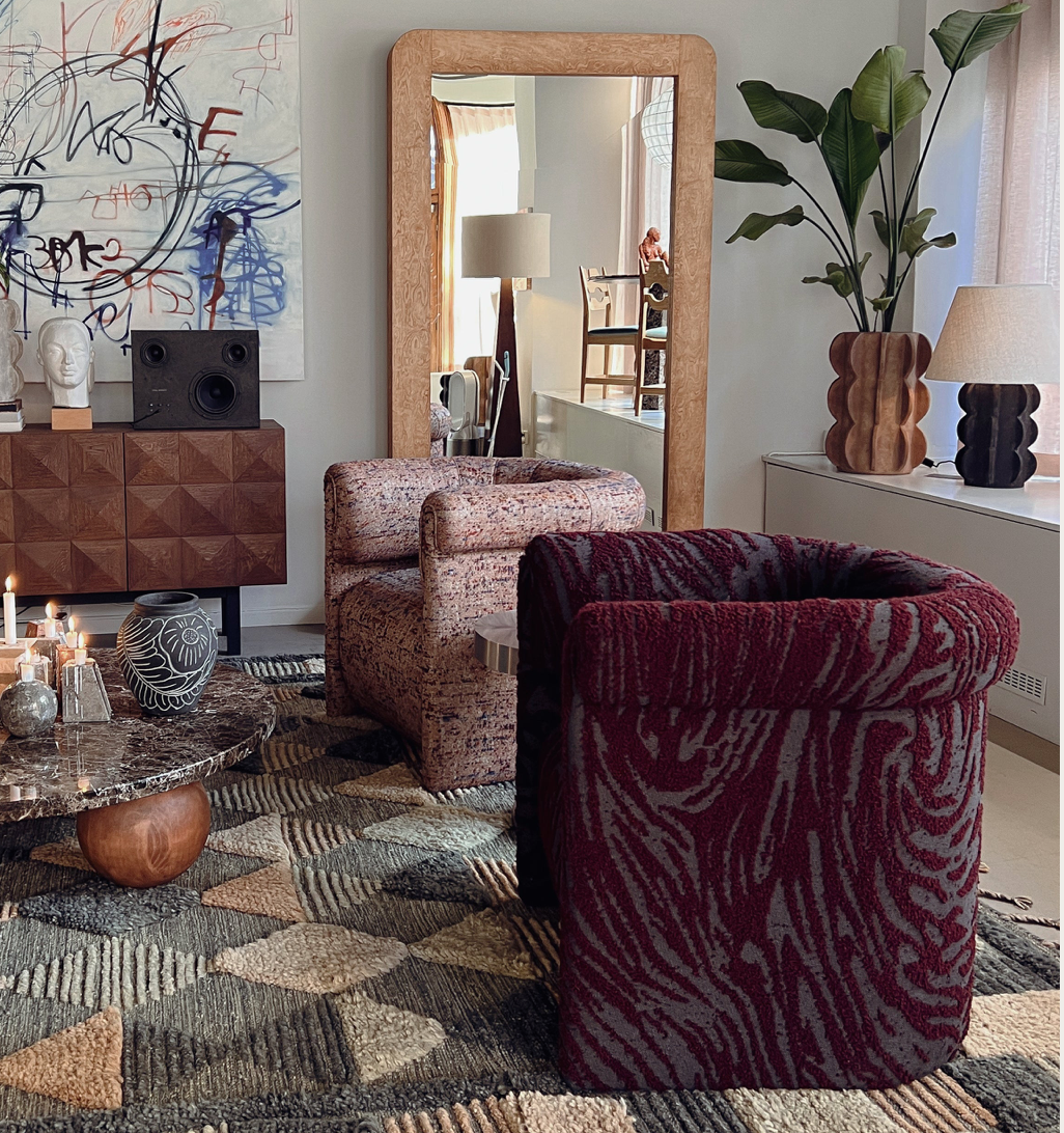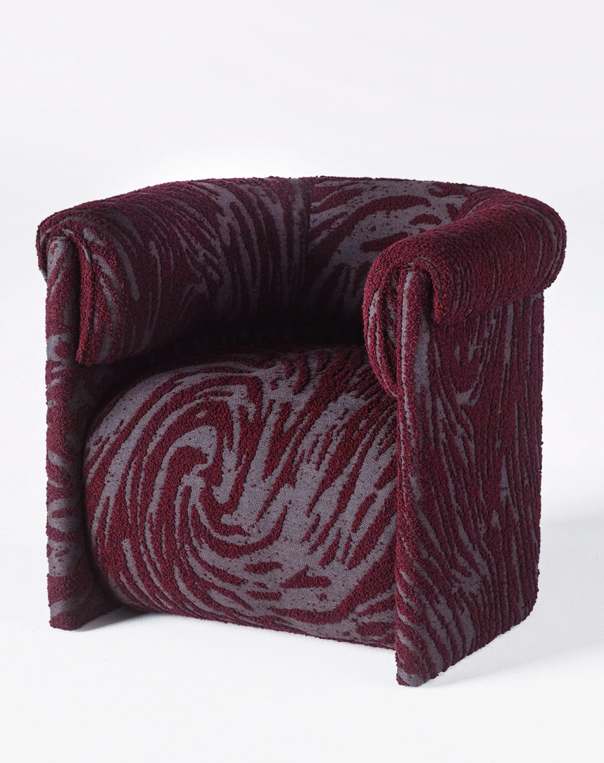Decadent Lounge Chair er først ut i Dusty Decos samarbeid med Studio Stockholm .Decadent loungechair er inspirert av den klassiske klubbstolen , men med en mer skulpturel utførelse i ett italienskt jacquardstoff med en ullblandet bouclé som gir dybde og karakter. Den gir eit statement med tidløs og modere sjel, der Dusty Decos design-DNA virkelig får komma till sin rett.