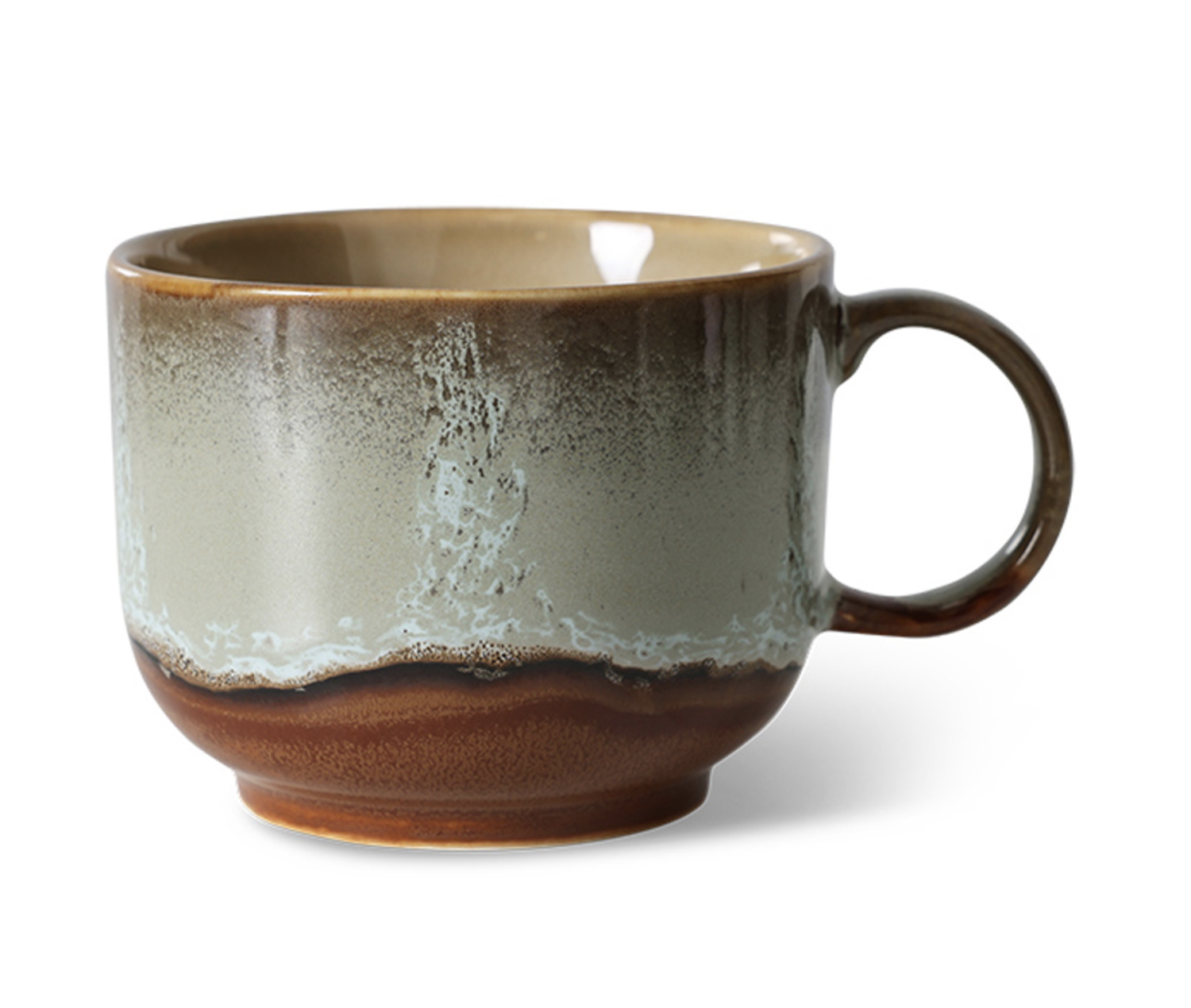 A welcome addition to our beloved 70s ceramic collection: the generously proportioned tea cup with handle. Inspired by traditional tea ceremonies from various cultures, this mug has been reimagined to offer a contemporary yet timeless design. With its tactile glaze and comfortable handle, it's a must-have for any tea lover - perfect for creating your own daily ritual.