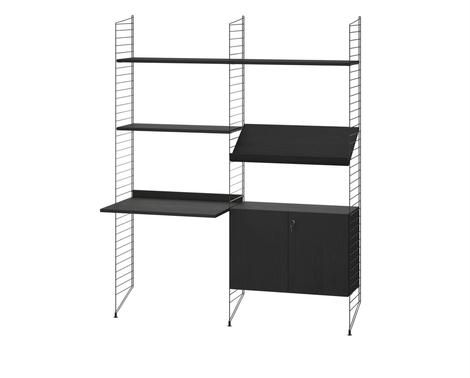 Upgrade your workspace with this efficient two-section solution, designed to keep all your binders, cables, papers, and more neatly organized. The lockable cabinet features push-open doors, with the right-hand door securely locking to protect your items