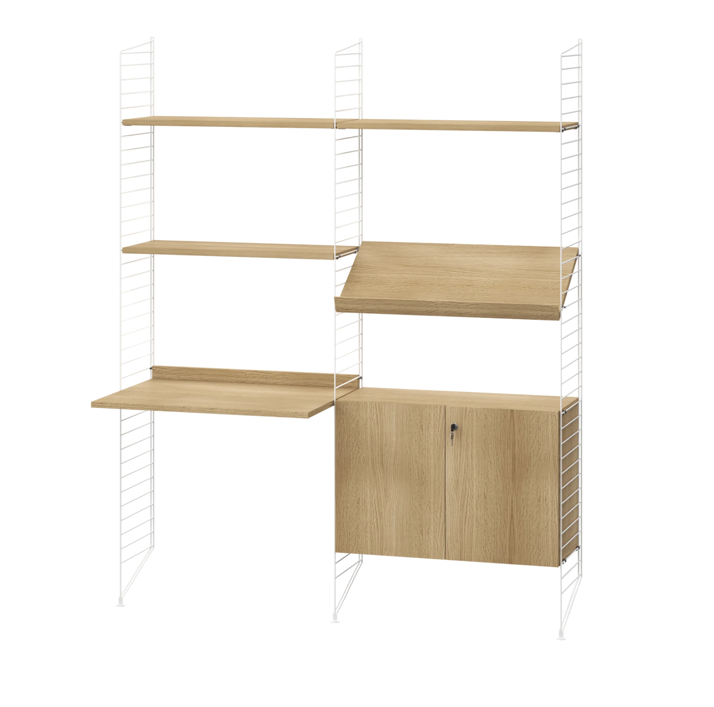 Upgrade your workspace with this efficient two-section solution, designed to keep all your binders, cables, papers, and more neatly organized. The lockable cabinet features push-open doors, with the right-hand door securely locking to protect your items
