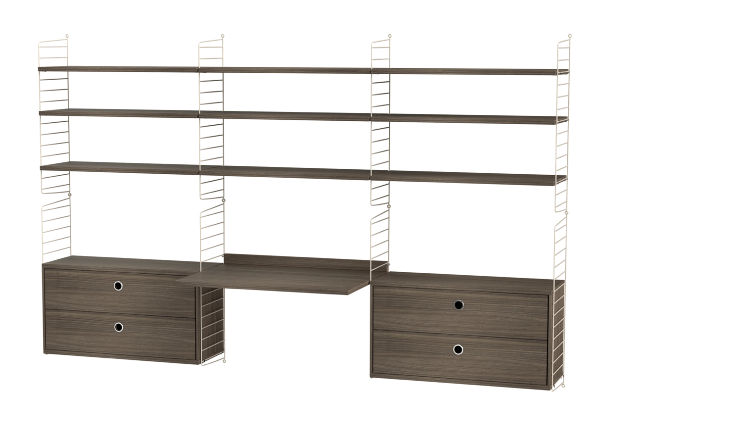 Regardless if your workspace is situated at the office or at home – we have the solution that covers all your needs. For the more spacious workspace we have this wall-hung combination with plenty of shelves, cabinets and a work desk in the middle.
