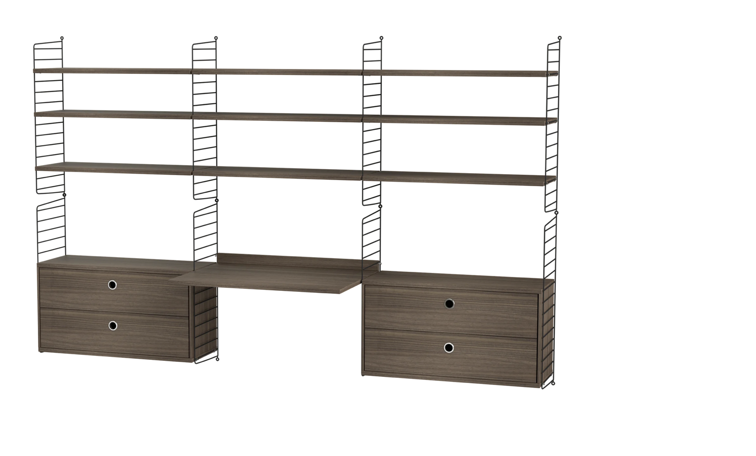 Regardless if your workspace is situated at the office or at home – we have the solution that covers all your needs. For the more spacious workspace we have this wall-hung combination with plenty of shelves, cabinets and a work desk in the middle.