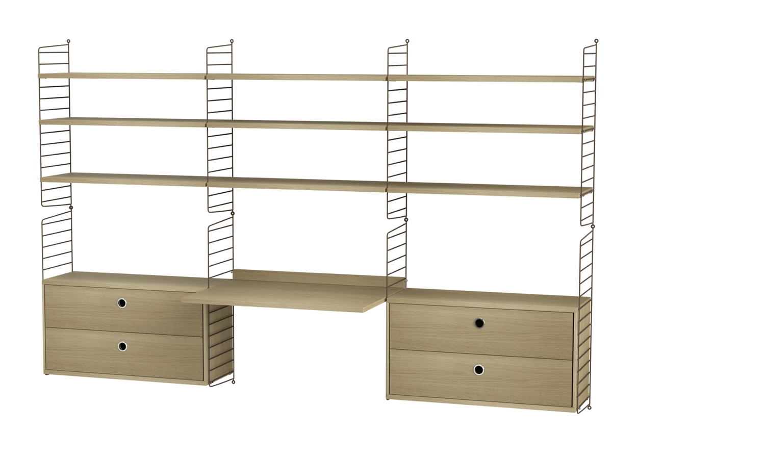 Regardless if your workspace is situated at the office or at home – we have the solution that covers all your needs. For the more spacious workspace we have this wall-hung combination with plenty of shelves, cabinets and a work desk in the middle.