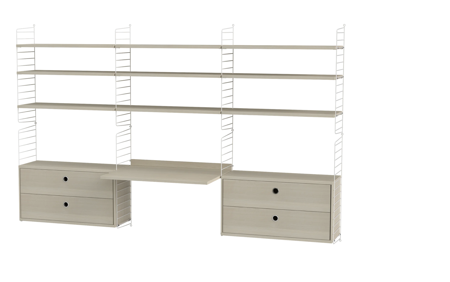 Regardless if your workspace is situated at the office or at home – we have the solution that covers all your needs. For the more spacious workspace we have this wall-hung combination with plenty of shelves, cabinets and a work desk in the middle.