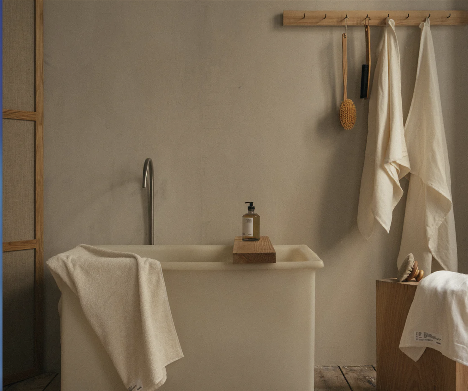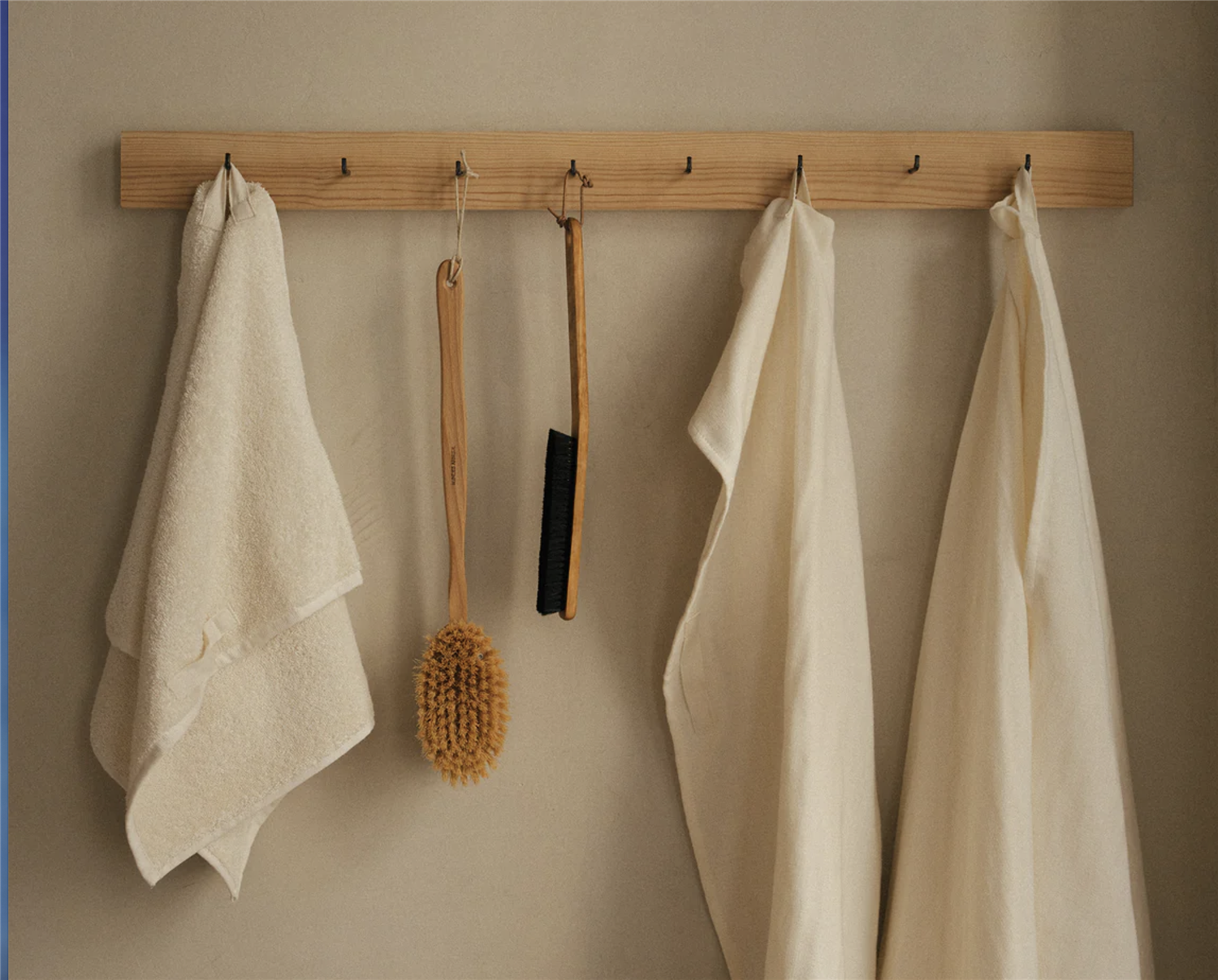 FRAMA Light Towels, made from 80% organic and Oeko-Tex certified cotton and 20% linen, are compact, quick-drying, gentle on skin, and naturally hypoallergenic. Lightweight and breathable, these thoughtful towels make a perfect travel companion or home textile. Suitable for bath, beach, and home.